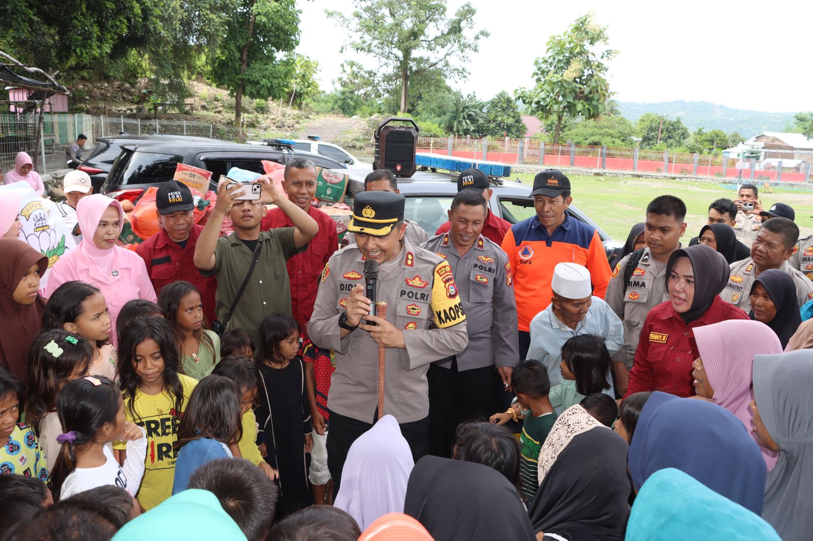 Polres Bima Kota Berikan Trauma Healing kepada Warga Terdampak Banjir di Desa Nanga Wera