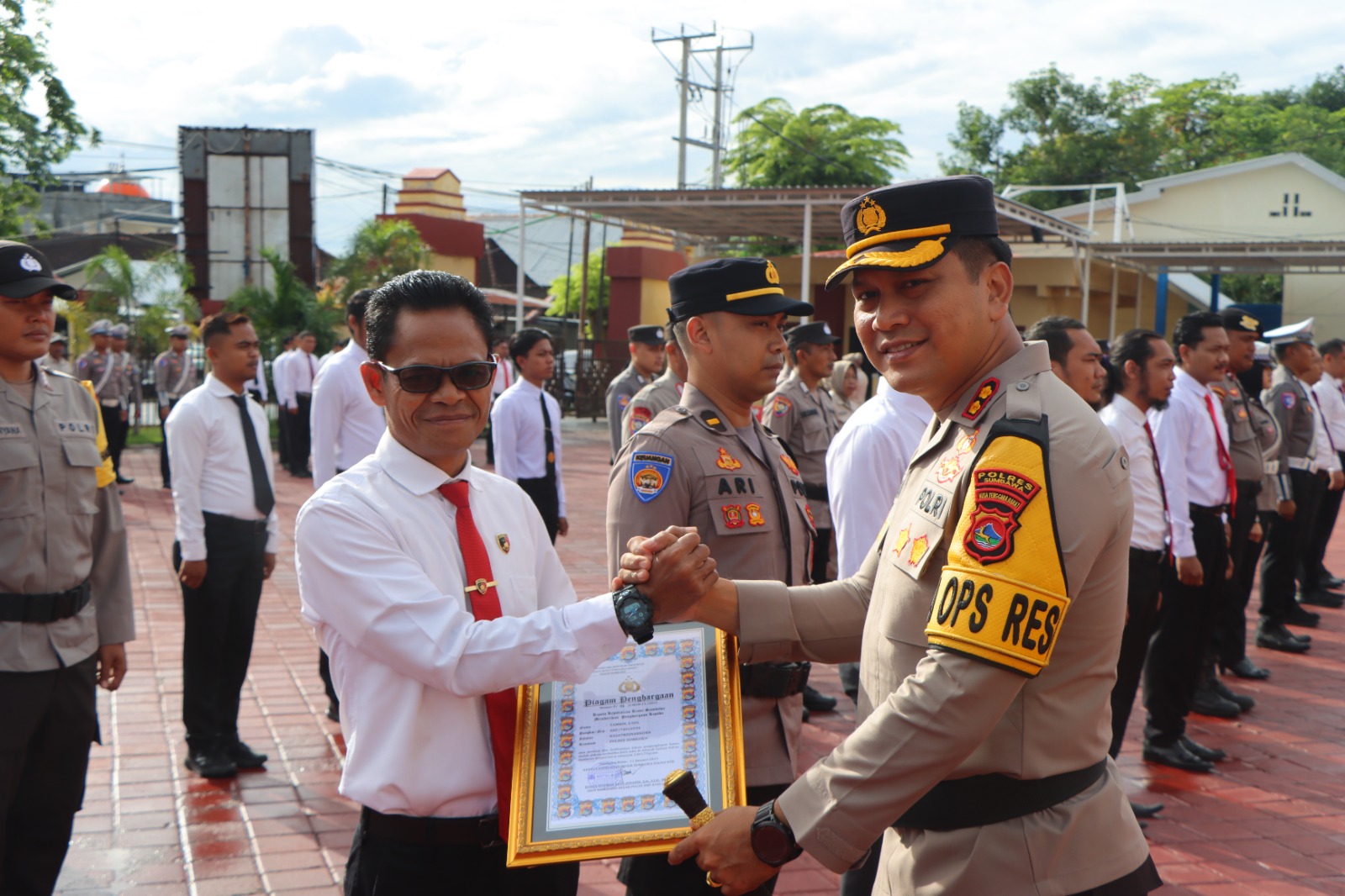 Dalam upacara tersebut sebanyak 36 personel Polres maupun Personel Polsek Jajaran menerima penghargaan yang diserahkan secara langsung oleh Kapolres Sumbawa.