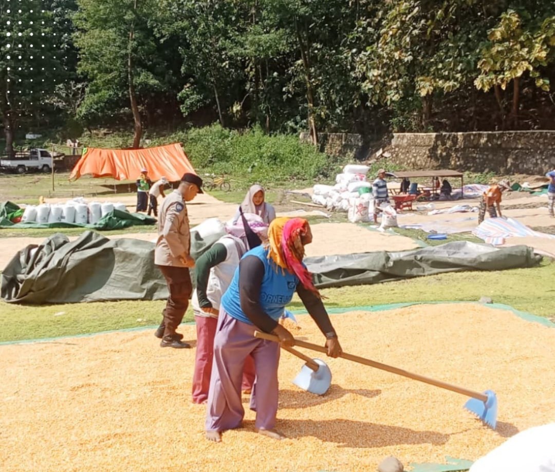 Kapolres Bima Kota AKBP Didik Putra Kuncoro, S.I.K., M.Si., melalui Kasi Humas Ipda Baiq Fitria Ningsih menyampaikan bahwa salah satu Bhabinkamtibmas Polres Bima Kota turut membantu proses pengeringan jagung milik warga binaannya yang tengah memasuki masa pascapanen.