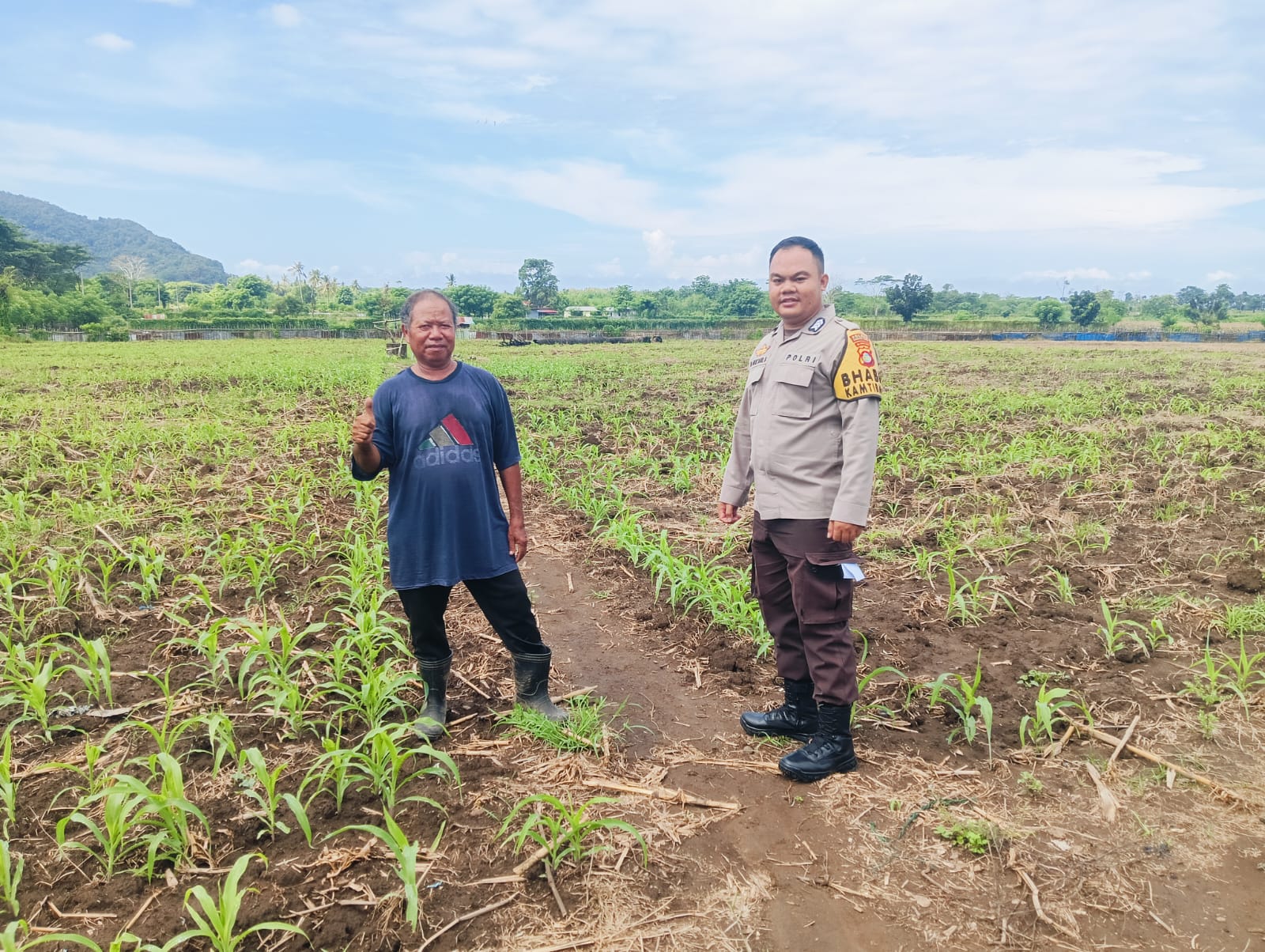 Kehadiran Bhabinkamtibmas di lahan jagung milik warga, yang tanamannya berusia sekitar 15 hari, menunjukkan perkembangan tanaman yang sehat dan pertumbuhan yang memuaskan. Ia menghimbau kepada para petani agar segera melaporkan jika mengalami kendala, seperti kelangkaan pupuk pada tahap pemupukan, agar bisa segera dikoordinasikan dengan Petugas Penyuluh Lapangan (PPL) Pertanian.