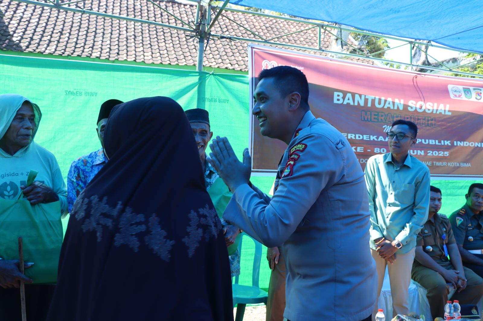 Kota Bima, NTB (5 Agustus 2025) – Dalam rangka menyambut Hari Ulang Tahun (HUT) Kemerdekaan Republik Indonesia ke-80 tahun 2025, Polres Bima Kota bekerja sama dengan Barisan Muda Wirausaha Indonesia (BMWI) menggelar kegiatan Bantuan Sosial (Bansos) Merah Putih pada Senin, 4 Agustus 2025, pukul 10.10 Wita, di Lingkungan Dodu I, Kelurahan Dodu, Kecamatan Rasanae Timur, Kota Bima.