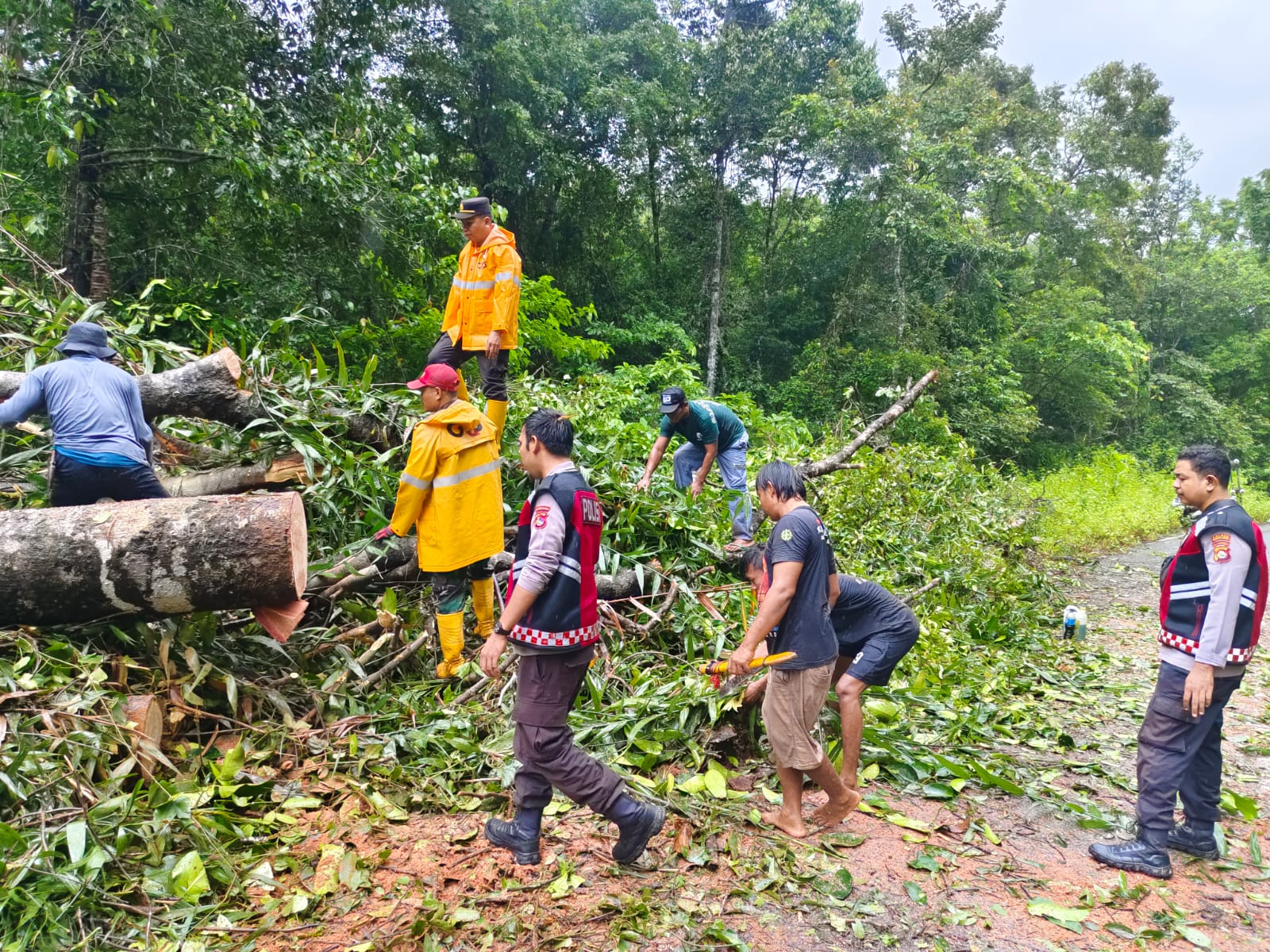 Kapolres Sumbawa Barat, AKBP Yasmara Harahap, S.I.K., melalui Kasi Humas, AKP Zainal Abidin, S.H., mengatakan, Kapolsek Sekongkang, Ipda Herman, S.H., bersama anggotanya dan Babinsa serta warga sekitar dan Subkontraktor PT. Swadaya melakukan pemotongan dan pembersihan ranting pohon yang jatuh ke jalan raya.