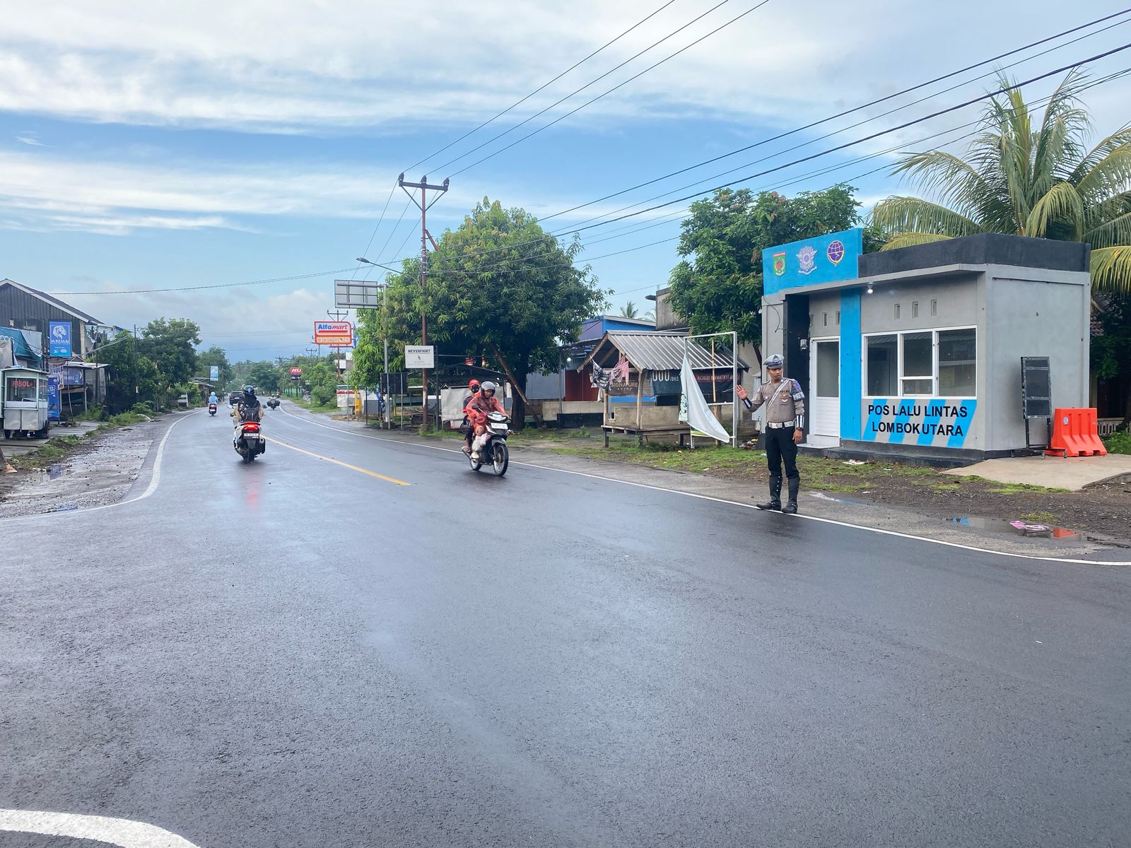Lombok Utara – Satuan Lalu lintas Polres Lombok Utara laksanakan strong point dan himbau masyarakat untuk selalu mengedepankan keselamatan dengan selalu tertib berlalulintas, Sabtu ( 15/2).