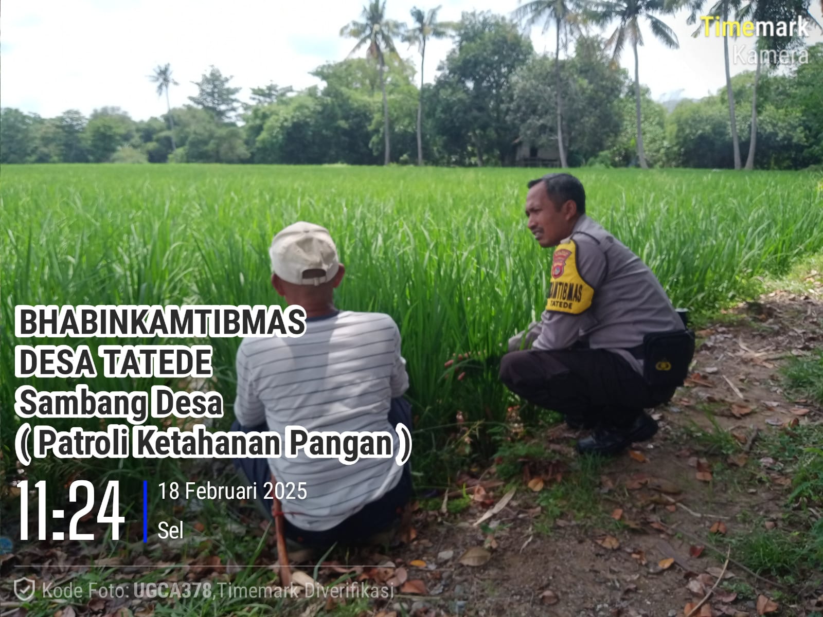 Sumbawa Besar-NTB, Bhabinkamtibmas Desa Tatede, Bripka Sulkarnaen, melaksanakan kegiatan sambang dan patroli dialogis di sekitar Dusun Tatede Dalam B, kawasan persawahan yang menjadi area pertanian masyarakat, Selasa (18/02/25) pagi.
