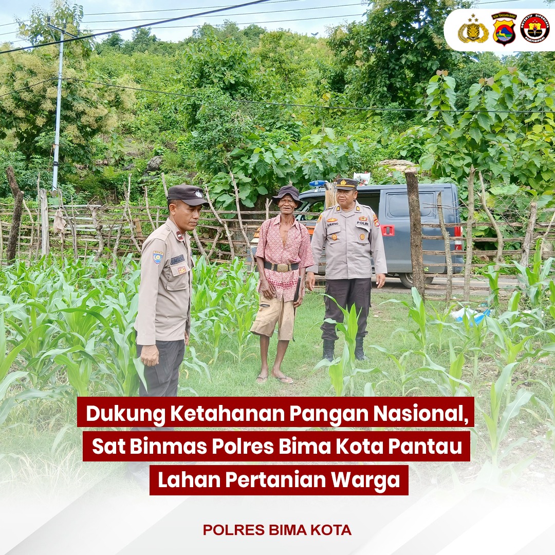Kota Bima, NTB (21/2) – Dalam rangka mendukung ketahanan pangan nasional, Kasat Binmas Polres Bima Kota, AKP Suratno, bersama personel Binmas, melakukan pemantauan perkembangan tanaman jagung milik Bapak H. Sanusi di Kelurahan Kumbe, Kecamatan Rasanae Timur, Kota Bima.