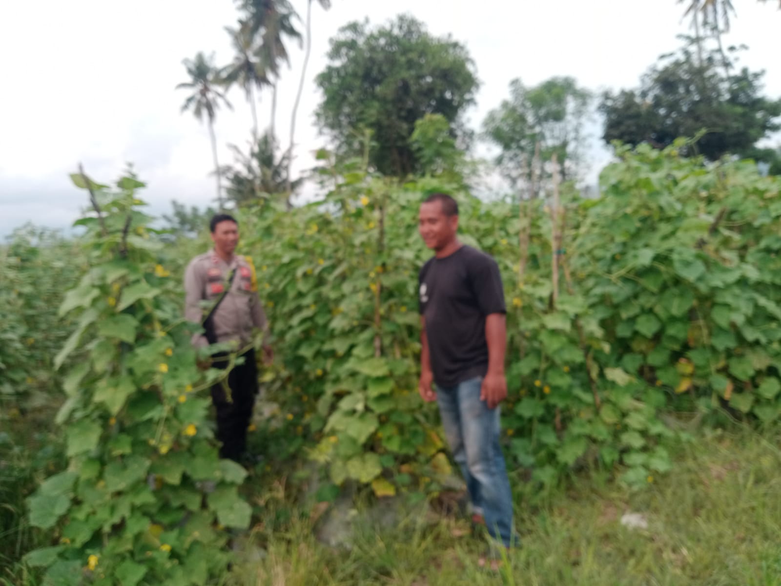 Dalam kesempatan tersebut, Bhabinkamtibmas meninjau lahan pertanian milik Junaidin yang ditanami jagung serta berbagai jenis sayuran. Ia juga memberikan imbauan mengenai pentingnya menjaga kesuburan tanah dan penggunaan pupuk serta pestisida yang aman.