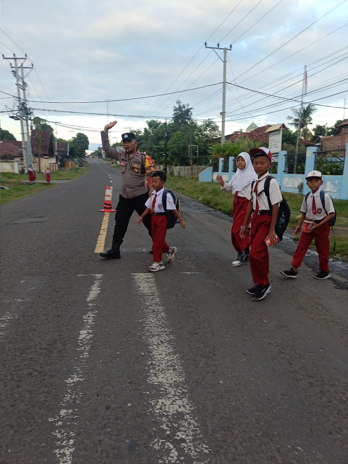 Seperti halnya pagi ini, Bhabinkamtibmas Desa Motong, AIPDA Burhanuddin, dengan sigap membantu anak-anak SDN 4 Utan menyeberang jalan demi keselamatan mereka, Senin (24/02/25) pagi.