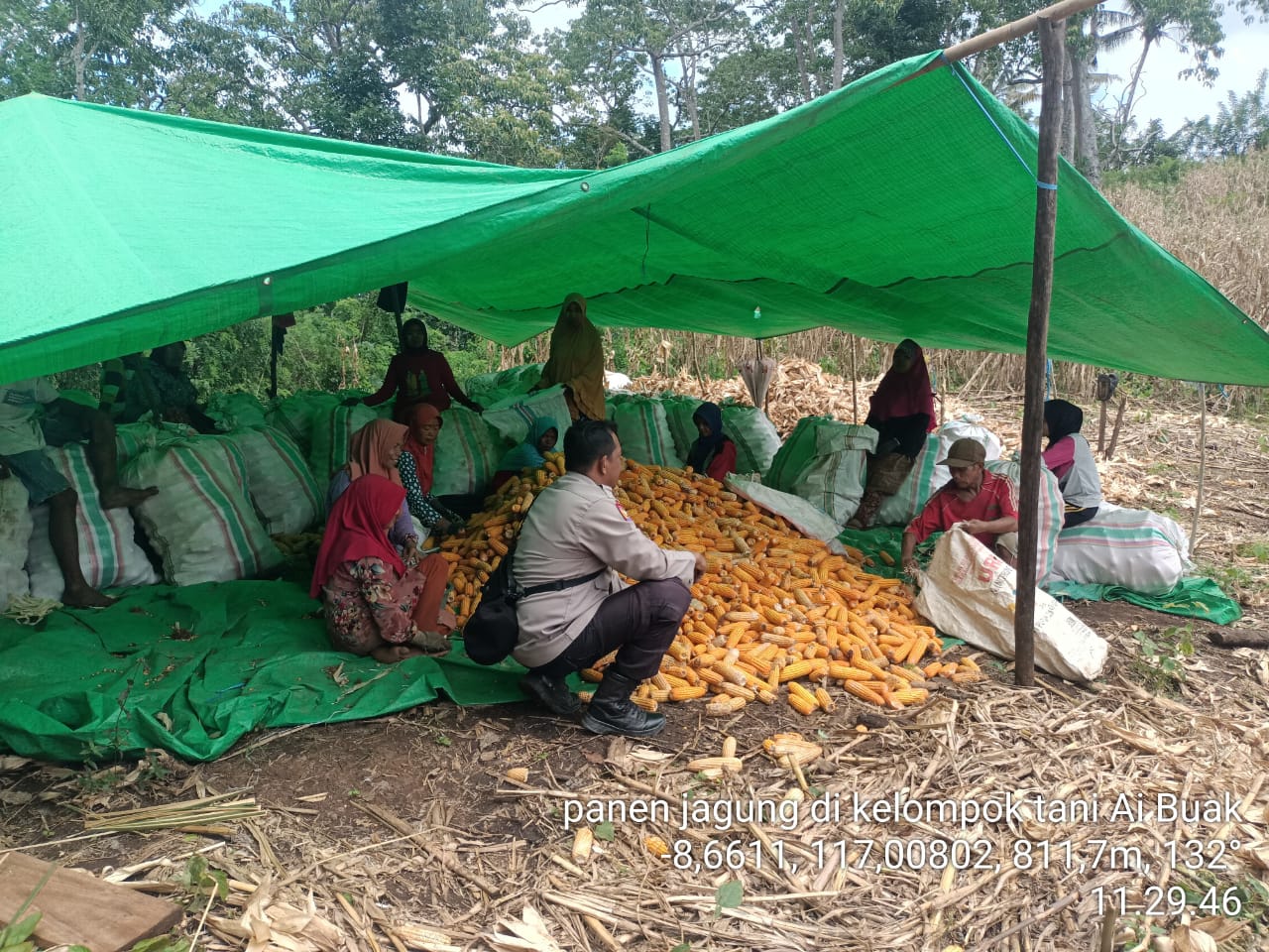 Panen jagung yang dilakukan oleh kelompok tani ini menjadi salah satu sumber pendapatan utama bagi warga setempat. Hasil panen tersebut rencananya akan dijual kepada pengusaha dengan perkiraan harga sekitar Rp 3.000 per kilogram. Meskipun demikian, petani menghadapi beberapa kendala yang cukup signifikan dalam proses pascapanen, antara lain, tidak adanya mesin pipil jagung yang memadai untuk mempermudah proses pengolahan, serta terbatasnya pembeli lokal yang dapat menampung hasil panen mereka dalam jumlah besar.