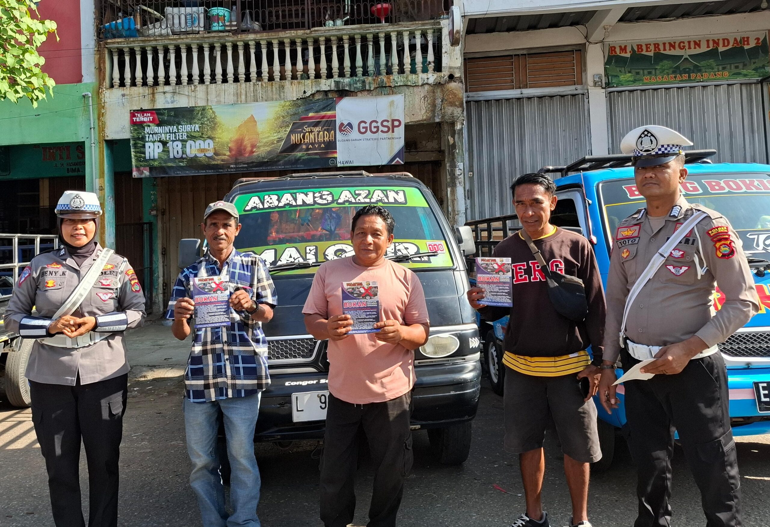 Kota Bima, NTB (6 Maret 2025) – Sat Lantas Polres Bima Kota menggelar kegiatan himbauan keselamatan berlalu lintas terhadap sopir pick up (bak terbuka) sekaligus membagikan brosur mengenai larangan kendaraan bak terbuka untuk memuat orang, yang hanya diperuntukkan bagi barang, pada Kamis, 6 Maret 2025, pukul 08.30 WITA di Pangkalan Pick Up (pertokoan) Kelurahan Sarae, Kecamatan Rasanae Barat, Kota Bima.