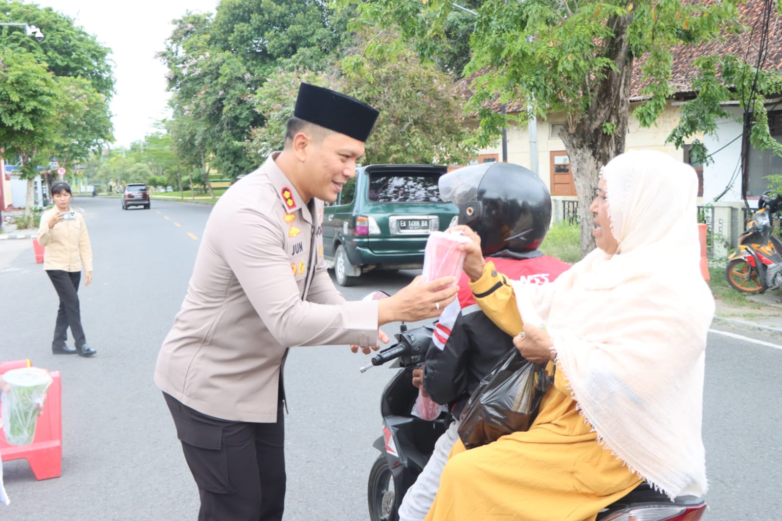Dalam kegiatan tersebut, Kapolres Sumbawa AKBP Junaedi turun langsung ke jalan dan membagikan paket takjil kepada para pengguna jalan. Kapolres menyampaikan bahwa kegiatan ini sebagai bentuk perhatian kepada masyarakat yang sedang berpuasa, khususnya mereka yang sedang dalam perjalanan.