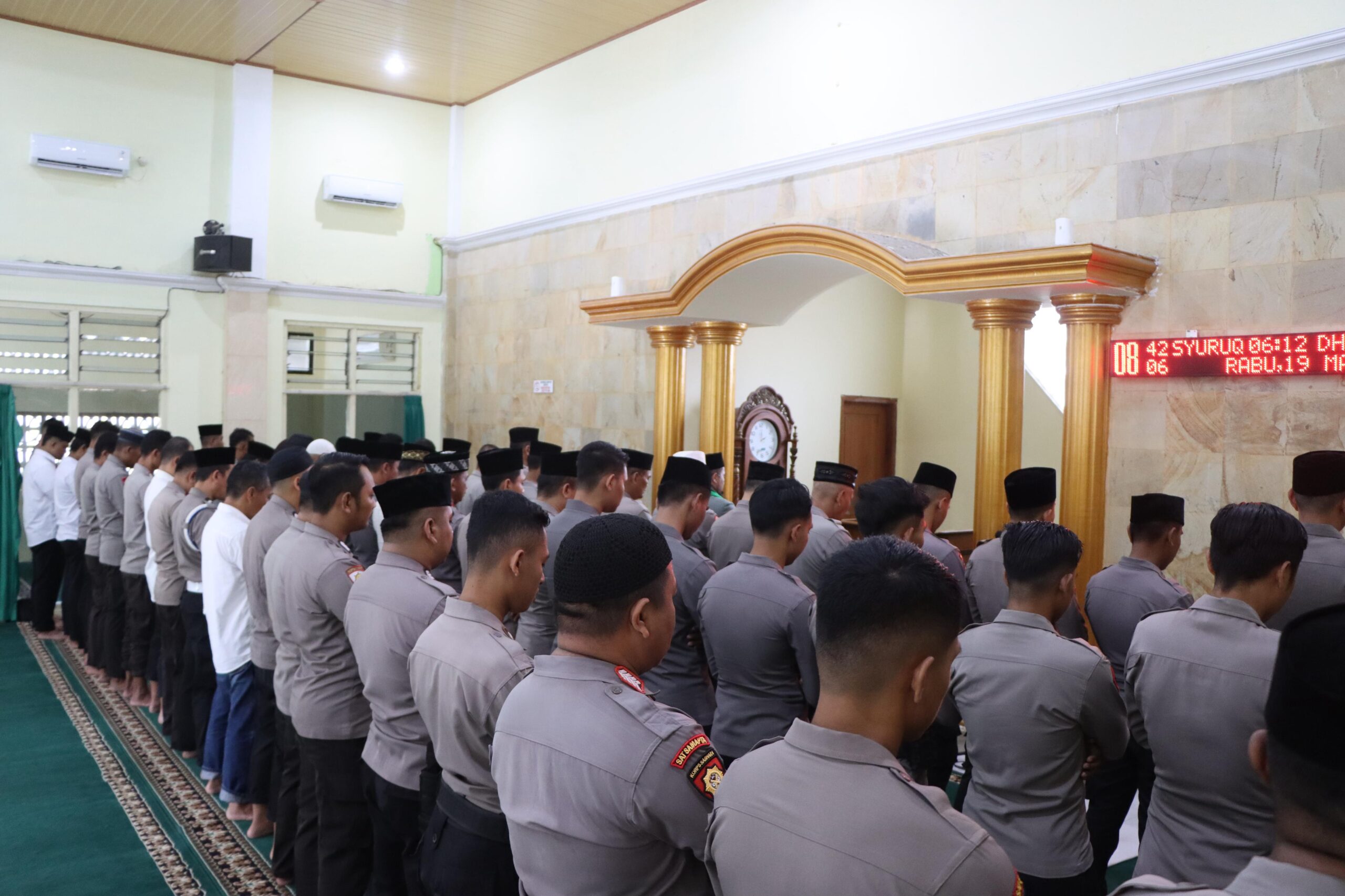 Sumbawa Besar–NTB, Polres Sumbawa, bersama seluruh Polsek jajaran, menggelar sholat ghaib pada hari Rabu (19/03/25) pagi sebagai bentuk penghormatan dan doa bersama bagi tiga anggota Kepolisian yang gugur dalam tugas di Kabupaten Way Kanan, Lampung.