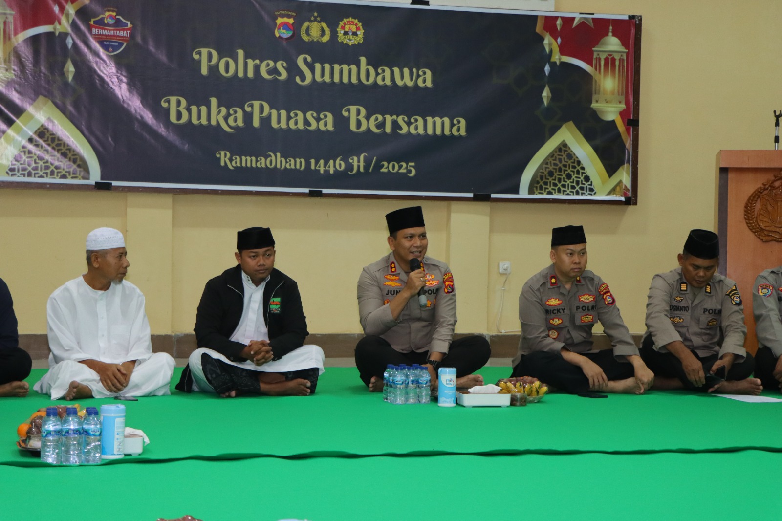 Sumbawa Besar–NTB, Polres Sumbawa menggelar acara buka puasa bersama anak yatim di Gedung Rupatama Polres Sumbawa, Rabu (19/03/25).