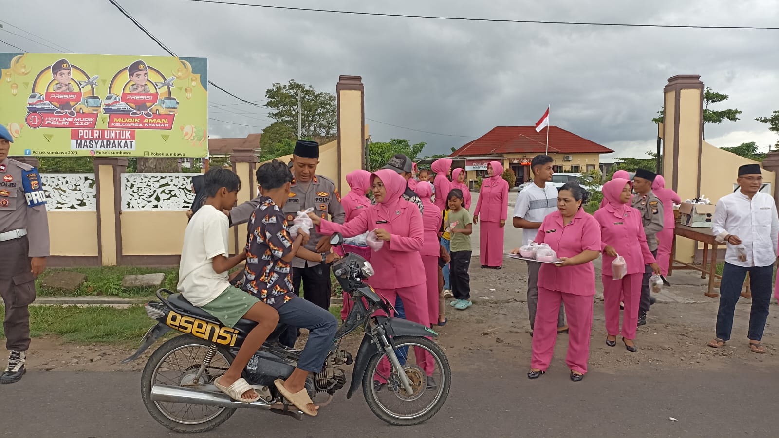Kapolsek Eko Riyono bersama personel Polsek Sumbawa dan Bhayangkari, terlihat begitu antusias membagikan puluhan paket takjil yang berisi minuman dan makanan ringan kepada masyarakat. Kegiatan tersebut disambut dengan penuh keceriaan, terlihat banyak warga yang mengantri untuk menerima takjil yang dibagikan.