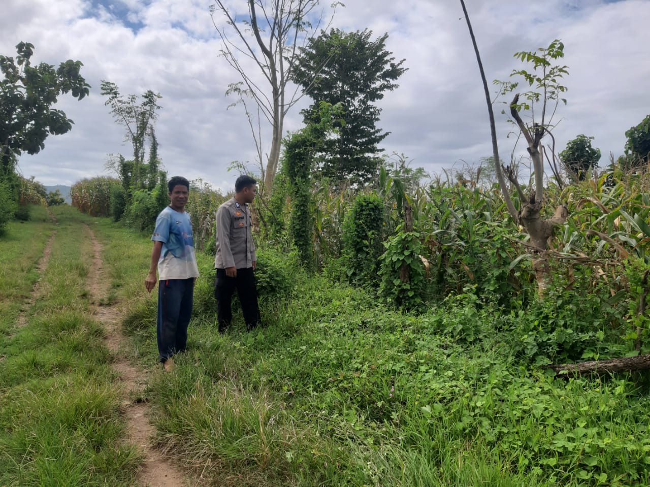 Pemantauan ini dilakukan di lahan pertanian milik Bapak H. Kamaludin, yang ditanami jagung. Dalam kesempatan tersebut, Bhabinkamtibmas memberikan himbauan kepada warga agar senantiasa memanfaatkan lahan pertanian maupun pekarangan untuk menanam tanaman produktif seperti jagung, padi, dan komoditas lain yang dapat menunjang ketahanan pangan.