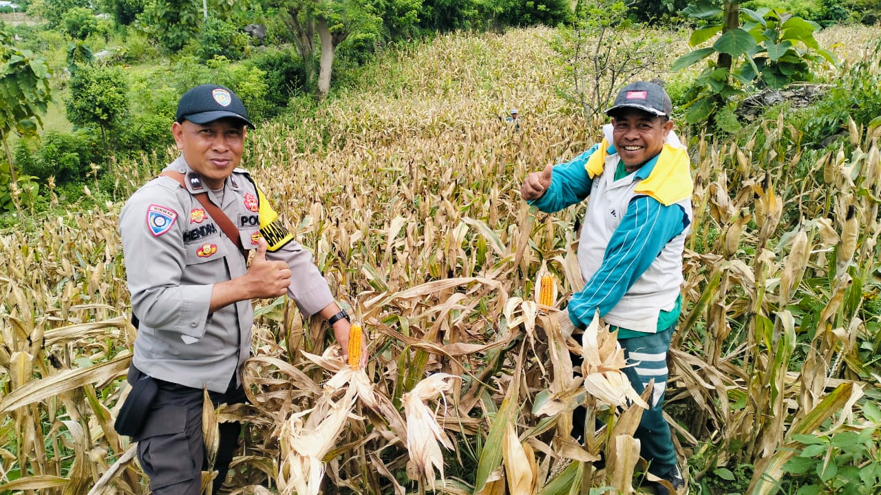 Bhabinkamtibmas Polsek Rasanae Barat Bantu Warga Panen Jagung di Sambinae