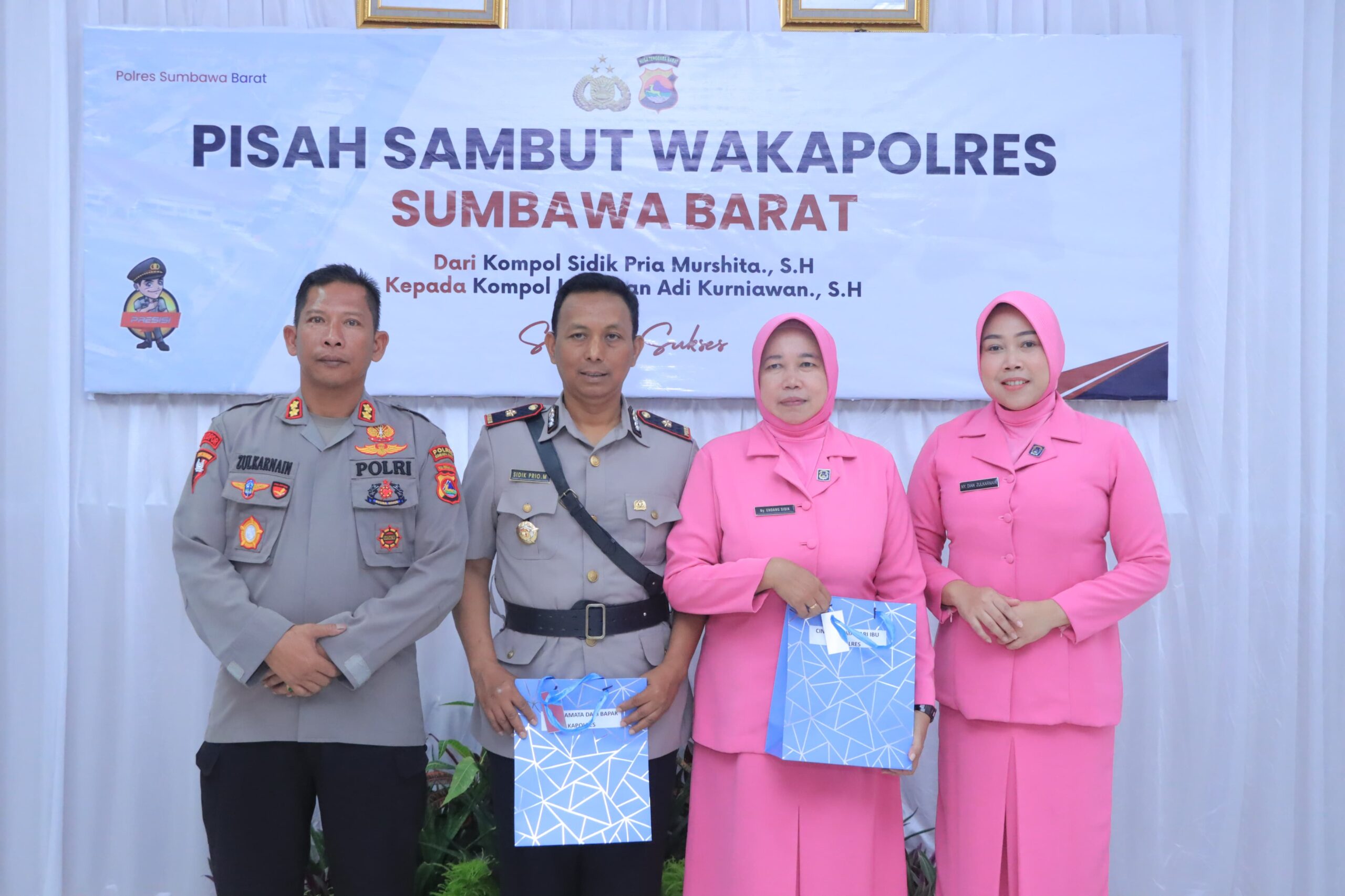 “Acara pisah sambut Wakapolres tersebut merupakan penghargaan kepada pejabat yang akan meninggalkan tugas di Polres Sumbawa Barat yaitu Kompol Sidik Pria Mursita, S.H., selanjutnya akan menjabat sebagai Wakapolres Lombok Timur dan perkenalan oleh pejabat baru, Kompol I Nyoman Adi Kurniawan, S.H., dengan keluarga besar Polres Sumbawa Barat,” terang Kapolres Sumbawa Barat, AKBP Zulkarnain, S.I.K., melalui Kasi Humas, AKP Zainal Abidin, S.H.