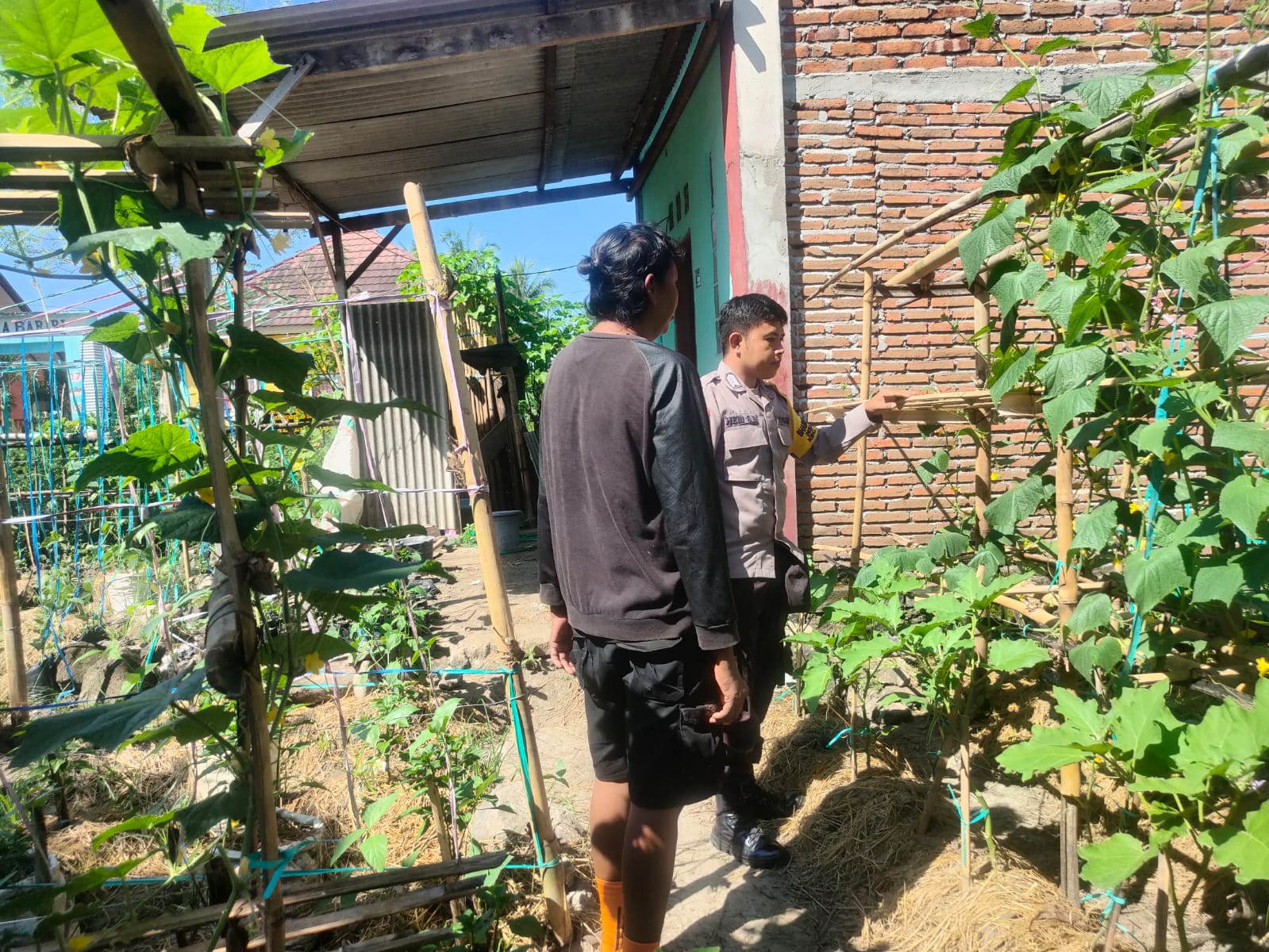 Dalam kesempatan tersebut, Bhabinkamtibmas tidak hanya memantau perkembangan lahan, namun juga memberikan masukan dan motivasi langsung kepada warga binaan agar tetap produktif dan inovatif dalam mengembangkan kebun pangan mereka.