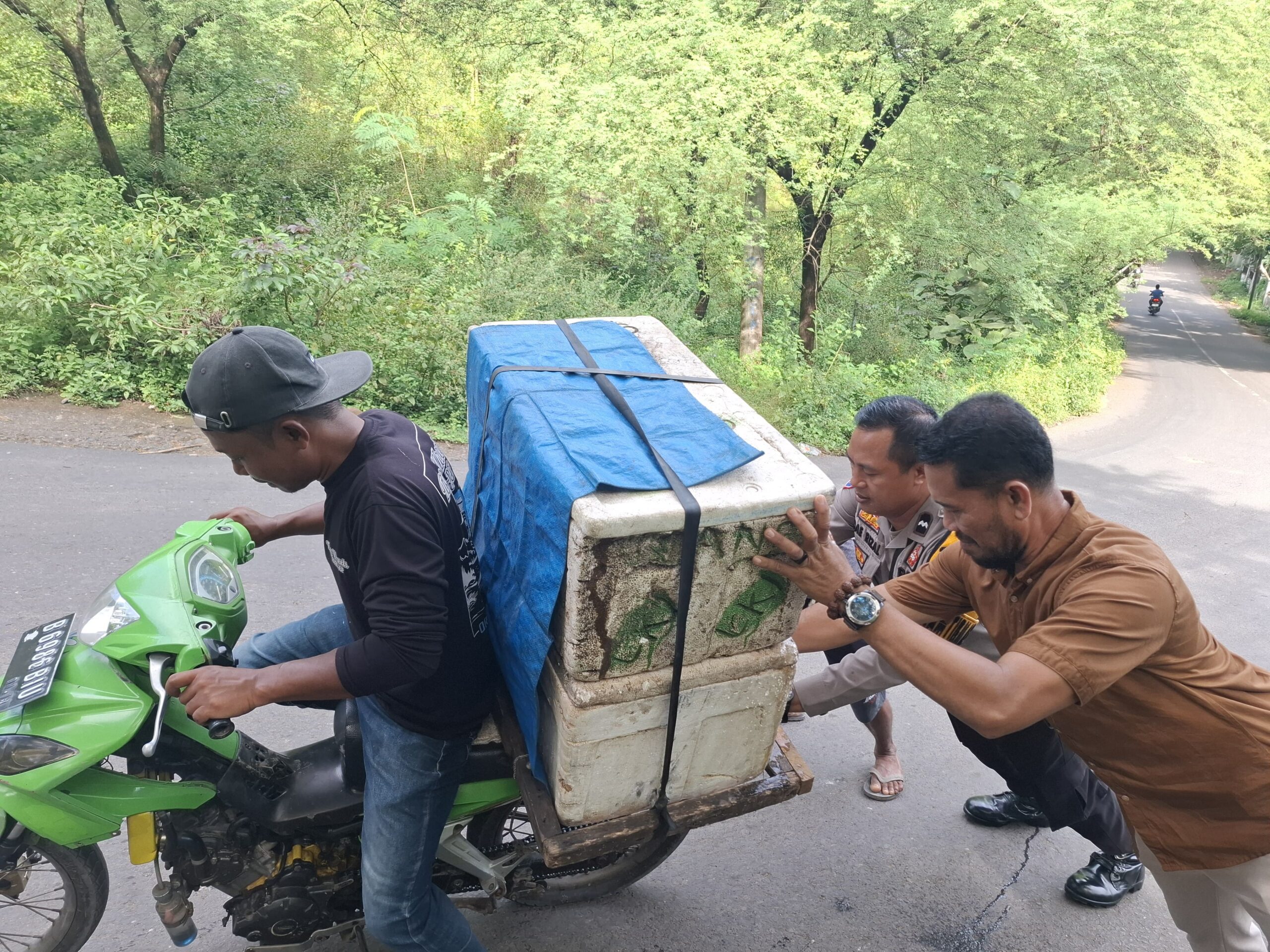 Tanpa ragu dan dengan tulus, keduanya mendorong motor sang penjual hingga mencapai puncak tanjakan. Aksi kecil namun penuh makna itu mengundang senyum haru dari sang pedagang, yang tak henti mengucapkan terima kasih kepada kedua personil tersebut.