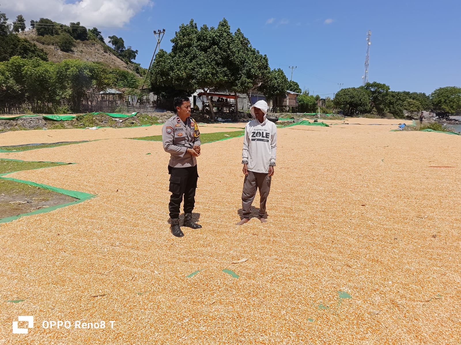Bhabinkamtibmas Desa Hu’u Pantau Penjemuran Jagung, Imbau Warga Waspadai Curah Hujan
