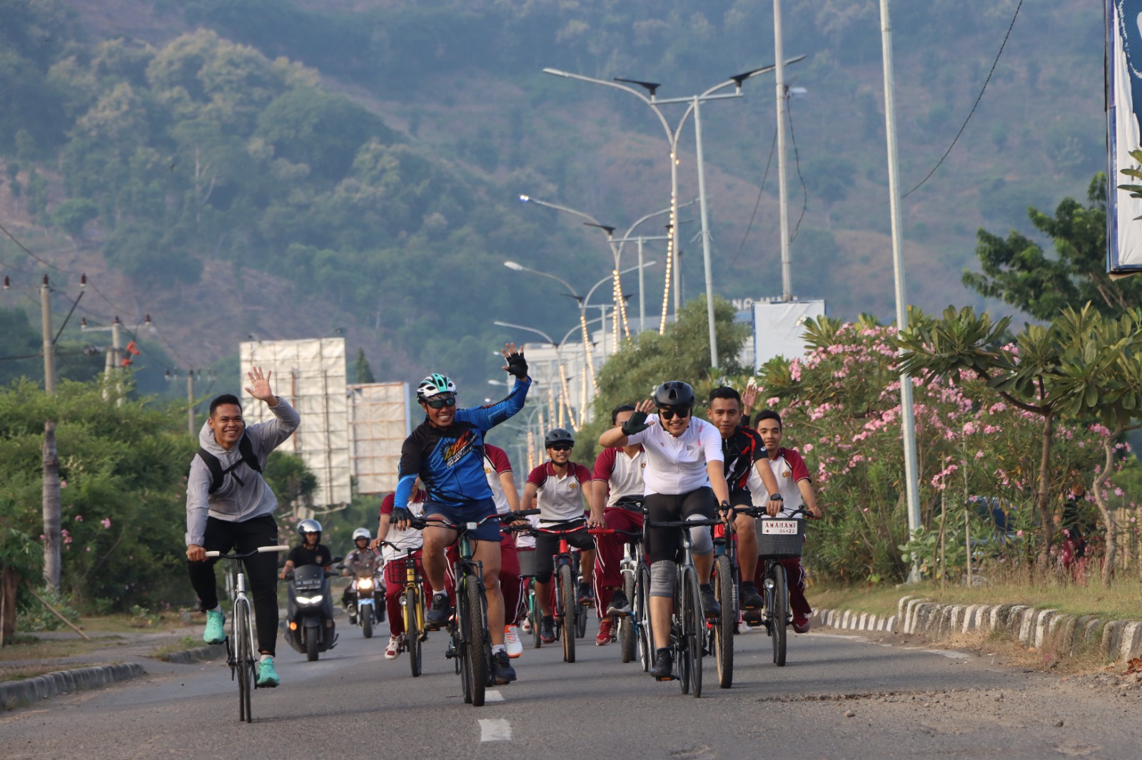 Kota Bima, NTB (3 Mei 2025) – Dalam rangka menjaga kebugaran fisik serta mempererat tali silaturahmi dan keakraban, Kapolres Bima Kota AKBP Didik Putra Kuncoro, S.I.K., M.Si., menggelar kegiatan gowes (bersepeda) bersama Pejabat Utama (PJU) dan sejumlah personel Polres Bima Kota, Sabtu pagi (3 Mei 2025).