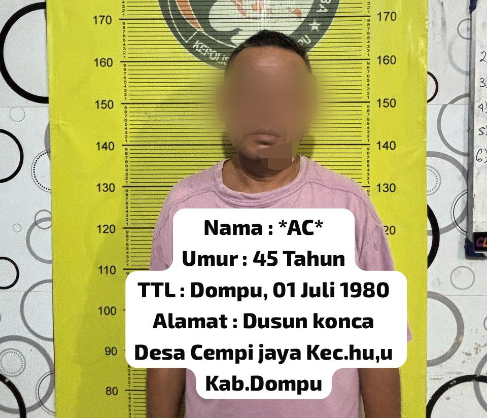 Berawal dari laporan masyarakat yang menyebut adanya aktivitas jual beli narkotika di sebuah rumah di Dusun Konca, Kasat Resnarkoba memerintahkan timnya untuk melakukan penyelidikan intensif. Hasilnya, terduga AC, pria 45 tahun yang berdomisili di Lingkungan Sawete Timur, Desa Bali, Kecamatan Dompu, berhasil diamankan dalam keadaan tenang tanpa perlawanan.