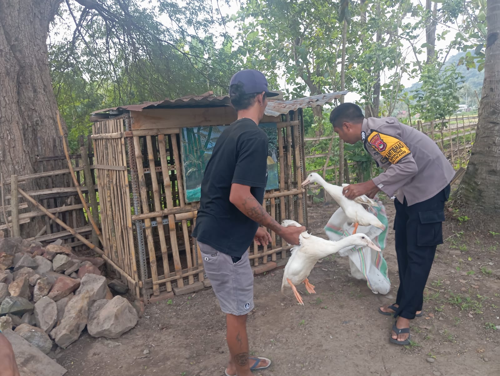 “Diharapkan dengan bantuan ini, warga dapat meningkatkan ekonomi mereka melalui hasil ternak bebek petelur, seperti telur yang dapat dijual. Bhabinkamtibmas juga memberikan motivasi dan pembinaan kepada warga terkait pemeliharaan bebek, pakan, dan pemasaran hasil ternak, sehingga warga dapat lebih produktif dalam sektor peternakan,” jelasnya.