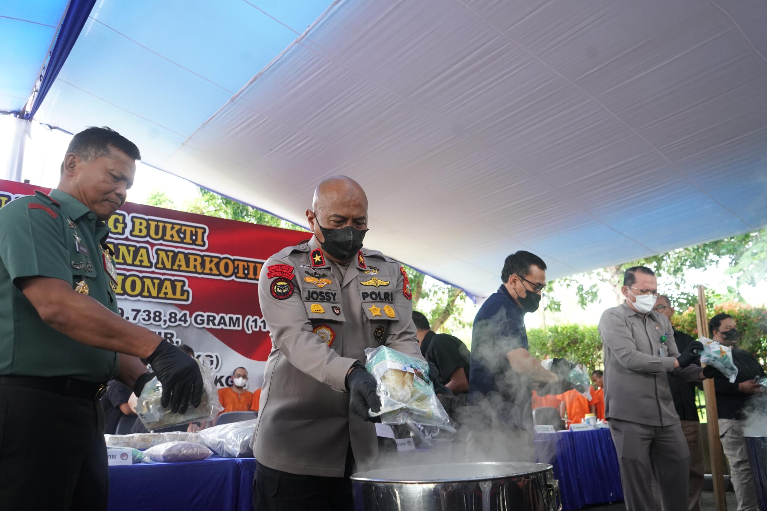 Dalam kegiatan pemusnahan barang bukti narkotika yang digelar hari ini, Polda Riau memusnahkan Barang Bukti Narkoba terdiri dari sabu seberat 119,7 kg, heroin 3,87 kg, ekstasi sebanyak 43.674 butir, dan ganja seberat 16 kg.