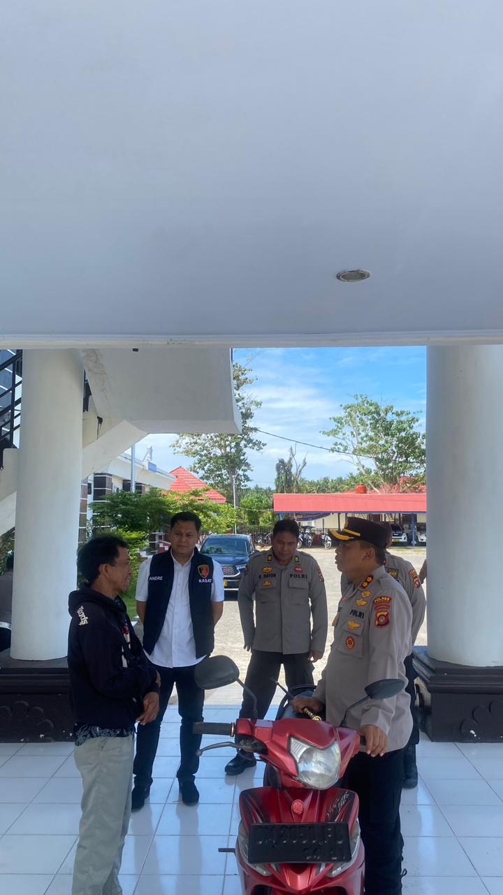 Wujud kepedulian terhadap korban Kapolres Pohuwato AKBP H. Busroni, S.I.K., M.H,. menyerahkan 1 unit bantuan sepeda motor merk Yamaha Vega kepada Korban Tindak Pidana Premanisme Pemerasan dan Pembakaran yang terjadi di Dambalo Kecamatan Popayato, Rabu (28/5/2025).