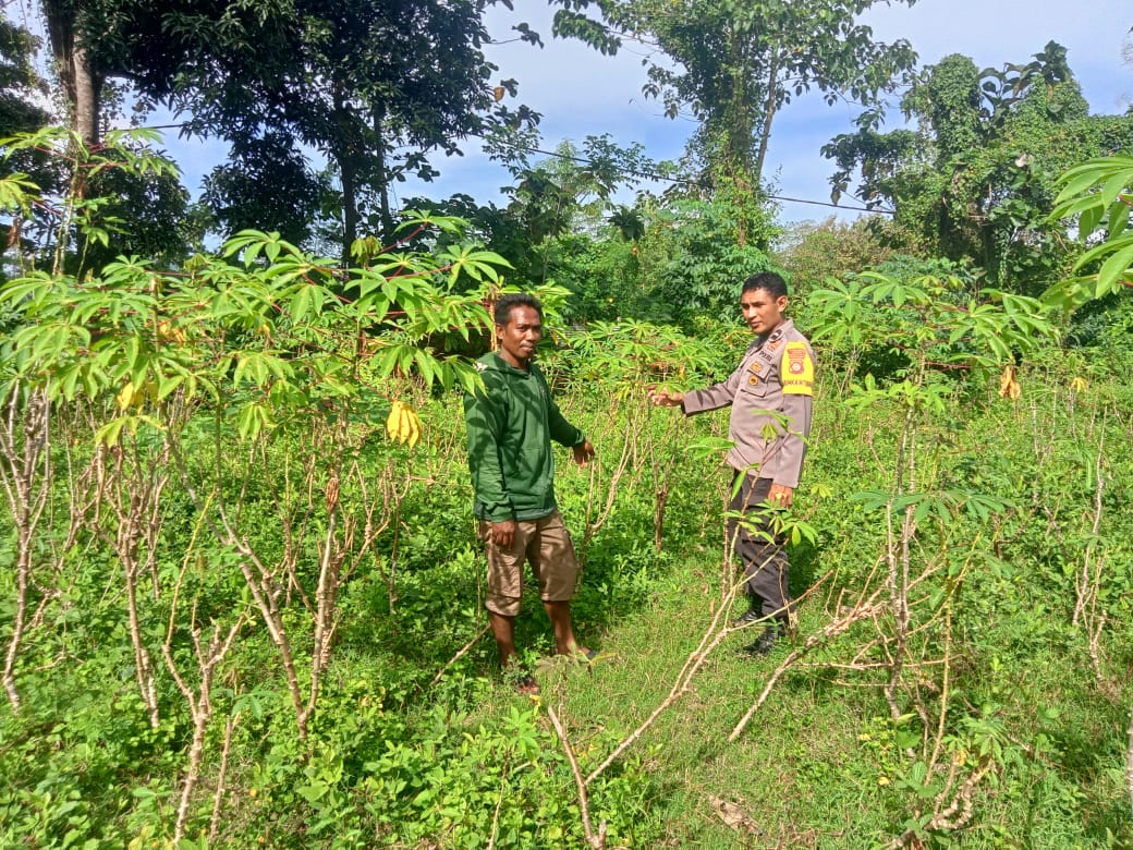 Dalam rangka mendukung Program Ketahanan Pangan Nasional menuju Indonesia Emas 2045, Bhabinkamtibmas Kelurahan Kandai 1 Polsek Dompu, AIPDA Khairil Muslim, melaksanakan pemantauan lahan pekarangan milik salah satu warga binaan, Iwan, yang tengah mengembangkan tanaman singkong dan sayuran.