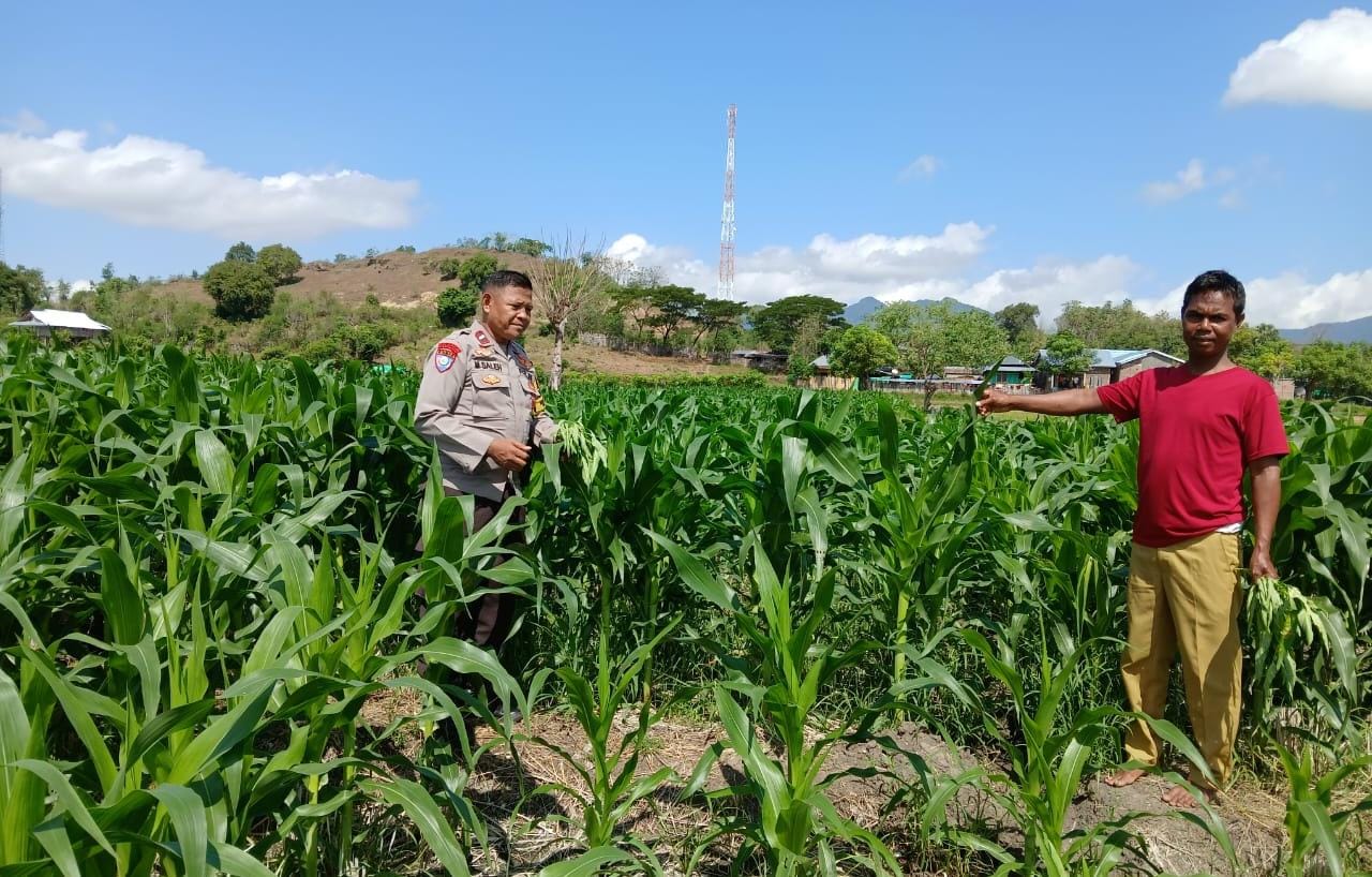 Mendukung program ketahanan pangan nasional, Bhabinkamtibmas Polsek Woha Polres Bima Polda NTB Aipda M.Saleh melaksanakan kegiatan peninjauan serta monitoring pertumbuhan  jagung.