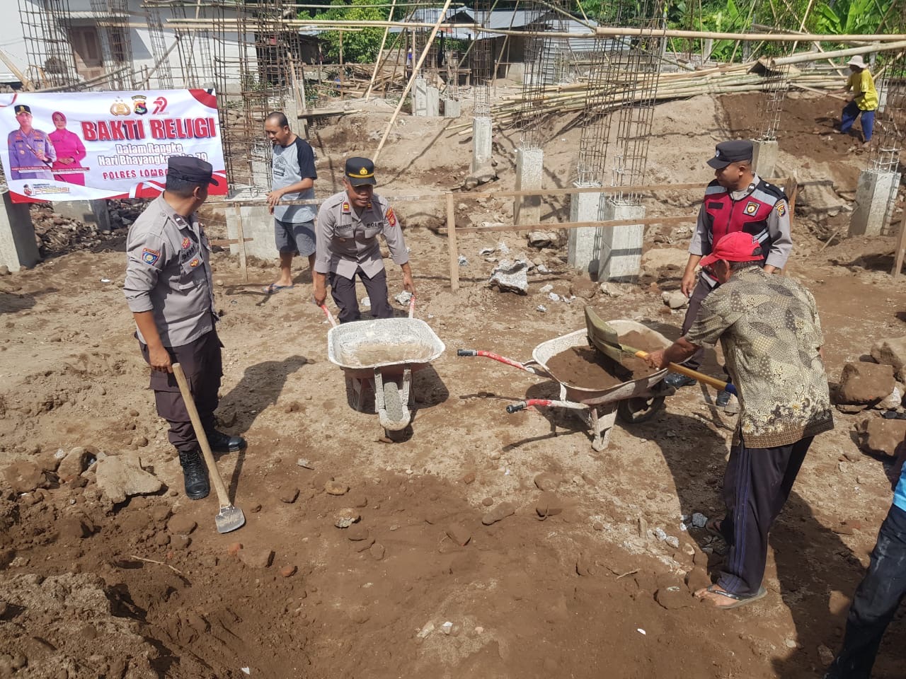 Kapolres Lombok Utara AKBP Agus Purwanta S.I.K. melalui Kapolsek Khayangan Iptu Zainuddin menyampaikan bahwa kegiatan ini dilaksanakan sebagai bentuk rasa syukur dan ungkapan terima kasih kepada Tuhan Yang Maha Esa atas rahmat dan karunia-Nya sehingga di berikan kesehatan dan dapat membantu warga dalam pembangunan tempat ibadah.