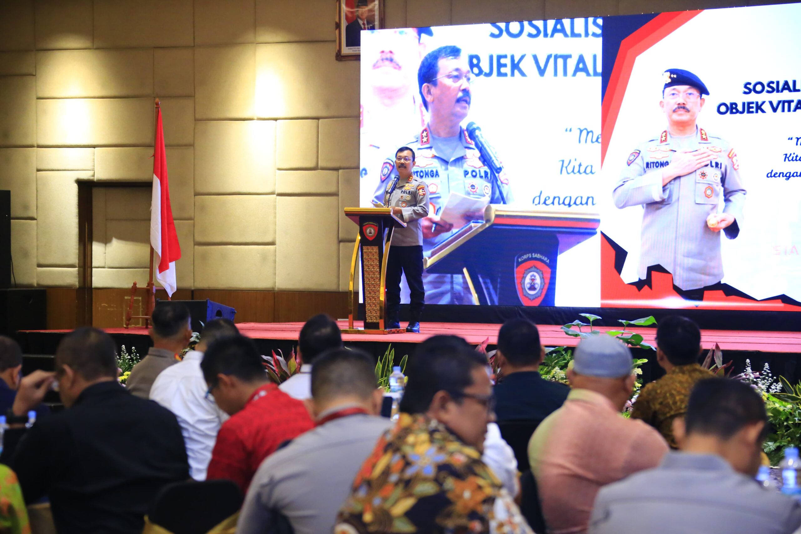 “Melalui Sosialisasi Sistem Manajemen Pengamanan Kita Tingkatkan Profesionalisme dan Sinergitas Polri dengan Pengelola Objek Vital Nasional dan Objek Tertentu Guna Mewujudkan Asta Cita”. Kegiatan ini diikuti oleh 100 peserta dari berbagai perusahaan.
