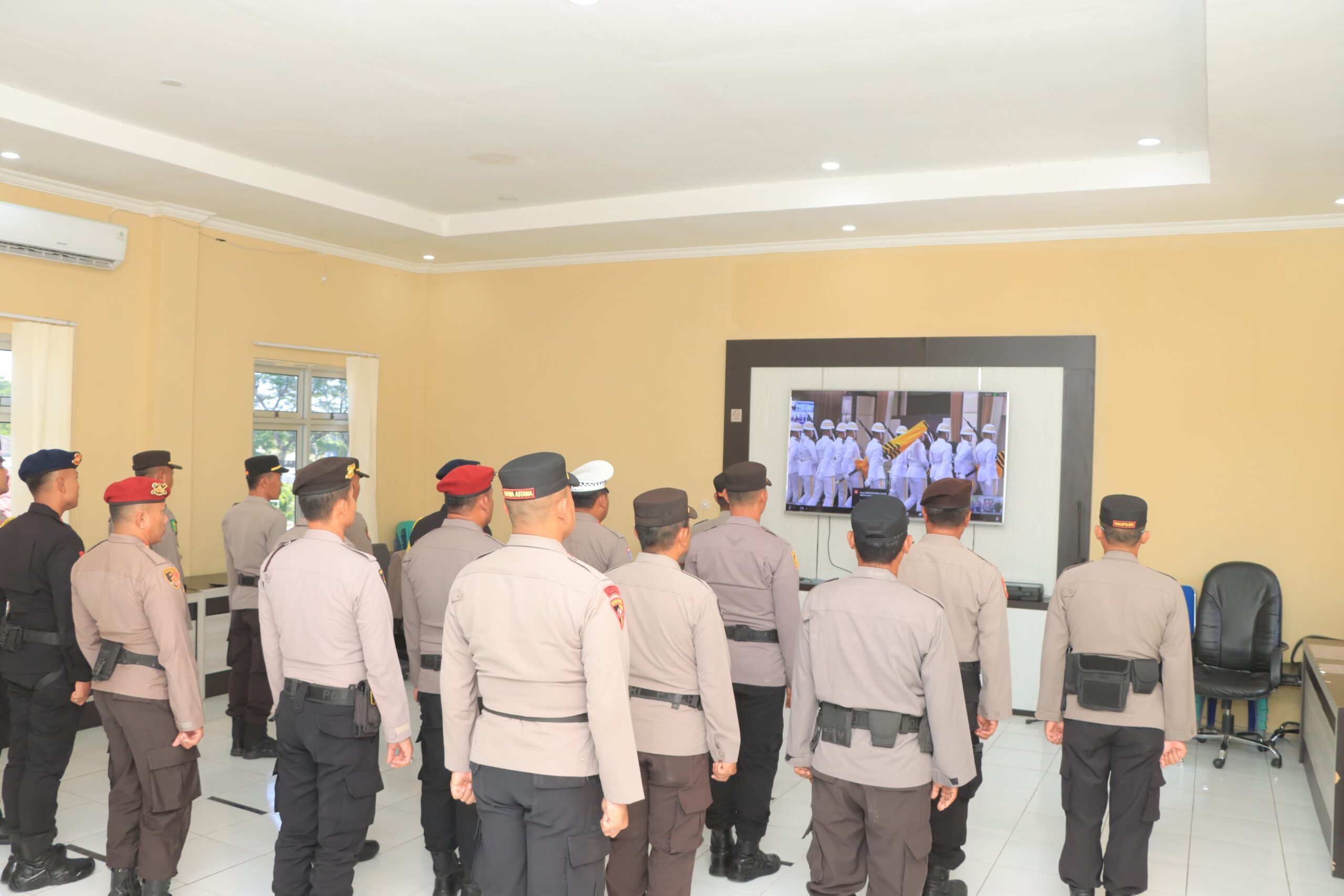 Kegiatan yang berlangsung khidmat ini dilaksanakan di Ruang Vicon Lantai 2, Gedung Sarja Arya Racana Polres Sumbawa Barat. Upacara dipimpin secara terpusat oleh Kapolri Jenderal Polisi Drs. Listyo Sigit Prabowo, M.Si. Sementara itu, Kapolres Sumbawa Barat AKBP Zulkarnain, S.I.K., turut hadir bersama Waka Polres Kompol I Nyoman Adi Kurniawan, S.H., para pejabat utama Polres, para Kapolsek jajaran, serta para perwira Polres.