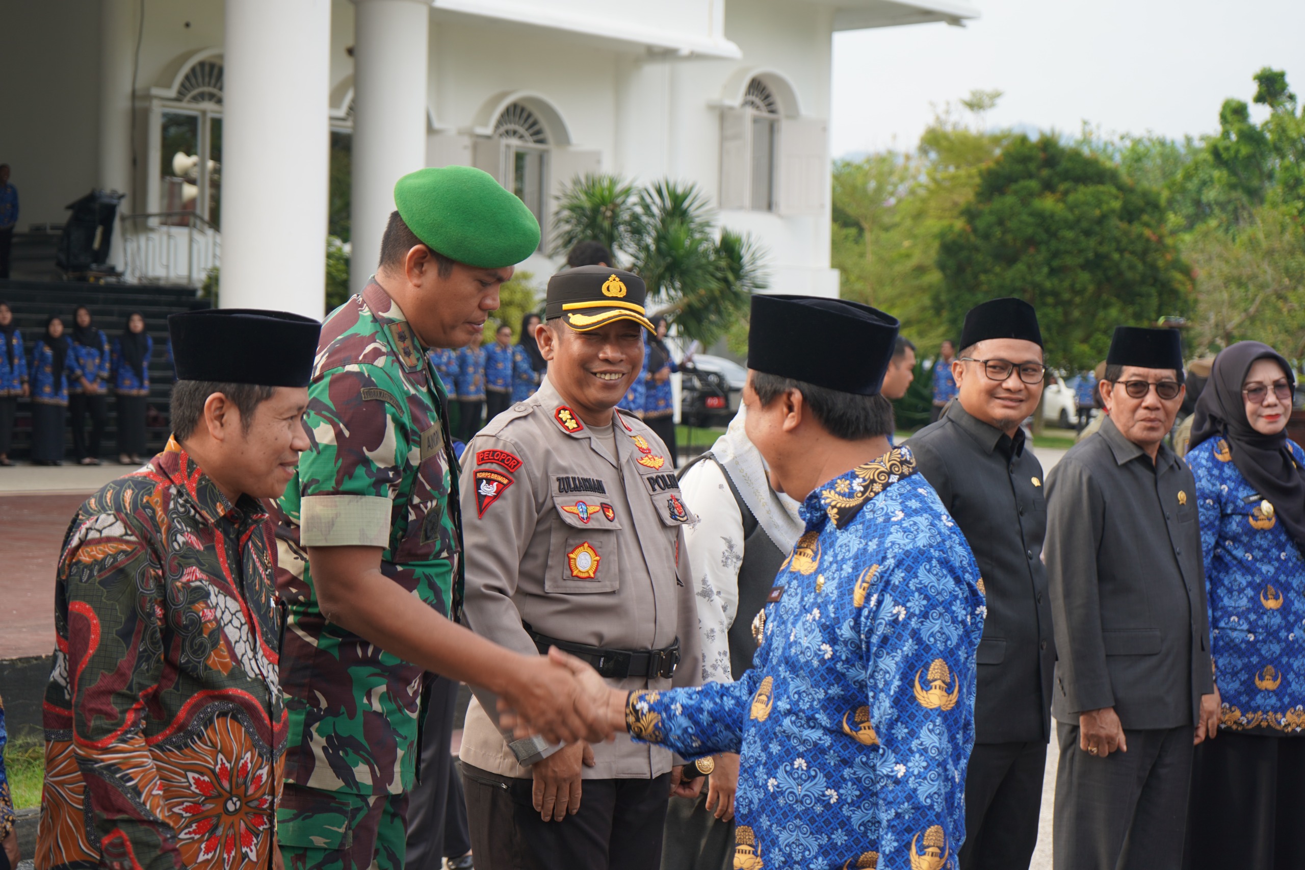 Upacara tersebut dipimpin langsung oleh Bupati Sumbawa Barat H. Amar Nurmansyah, S.T., M.Si., dan dihadiri oleh jajaran Forkopimda, antara lain Wakil Bupati Hj. Hanipah, S.Pt., M.M.Inov., Dandim 1628/Sumbawa Barat Letkol Inf. Andri Karsa, S.Sos., M.Han., Kapolres Sumbawa Barat AKBP Zulkarnain, S.I.K., Wakil Ketua II DPRD Merliza, S.Sos., Sekda Kabupaten Sumbawa Barat drh. Haerul, M.M., para kepala instansi vertikal, kepala OPD, serta tamu undangan lainnya.