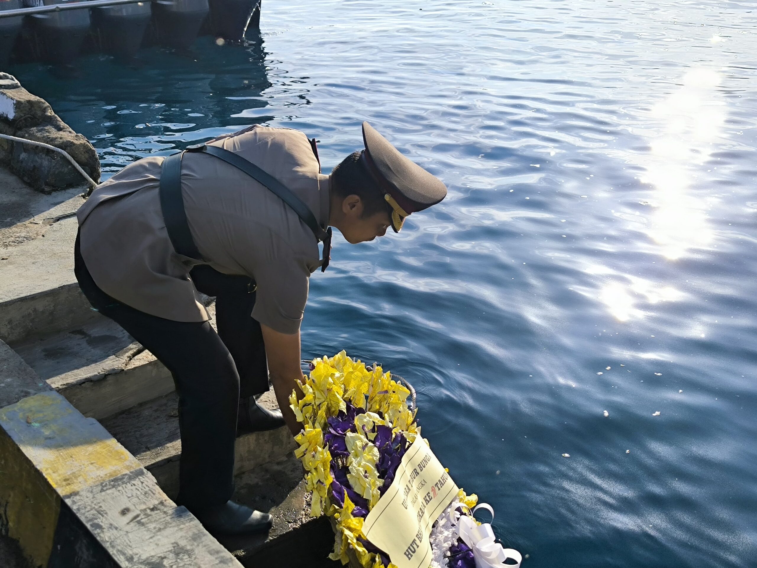 Upacara dipimpin langsung oleh Kapolres Lombok Utara AKBP Agus Purwanta, S.I.K., yang turut didampingi oleh para Pejabat Utama dan personel Polres Lombok Utara. Rangkaian kegiatan diawali dengan penghormatan kepada arwah para pahlawan, dilanjutkan dengan prosesi tabur bunga di laut perairan Teluk Nara sebagai simbol penghormatan.