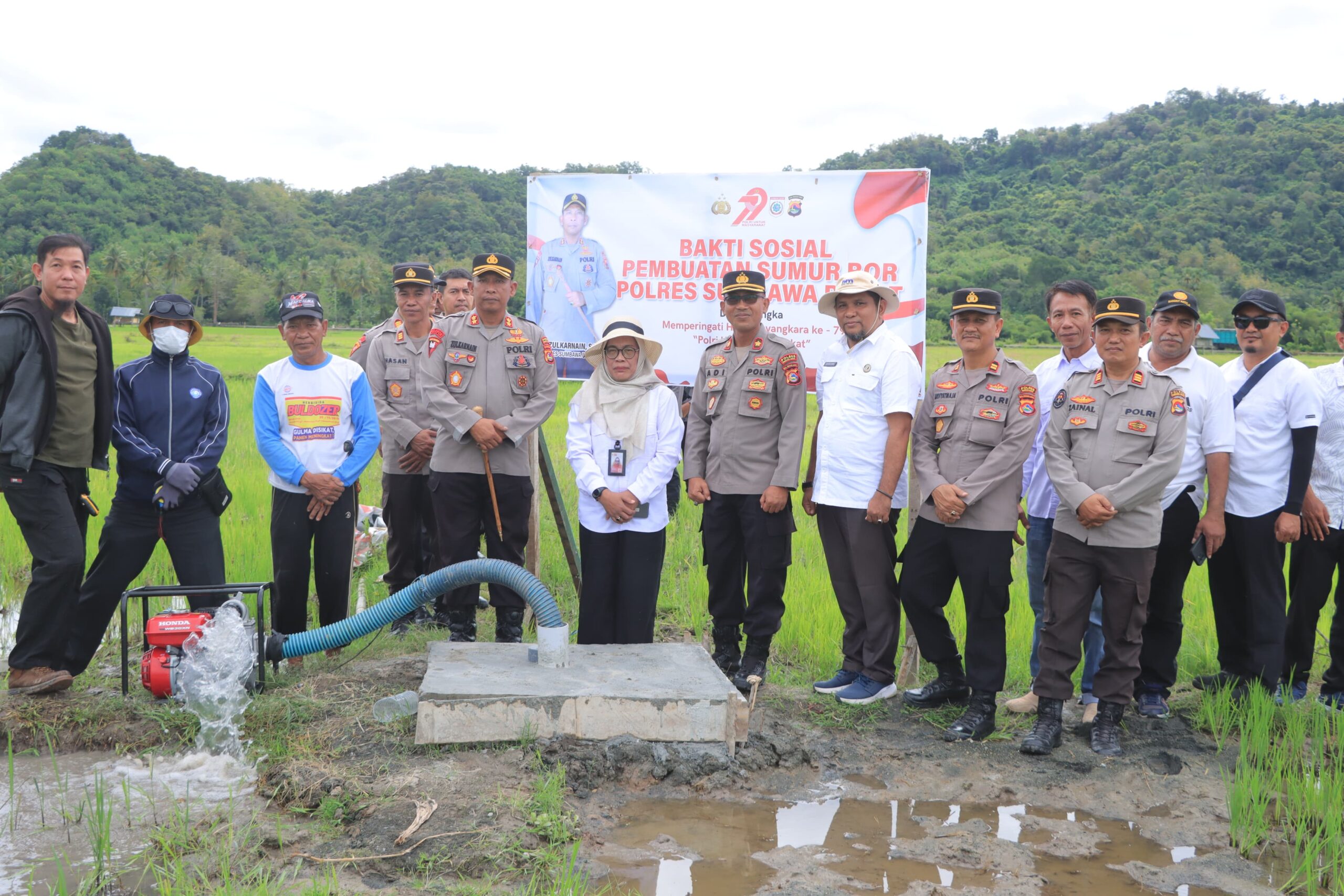 Sumbawa Barat, NTB – Dalam rangka memperingati Hari Bhayangkara ke-79 Tahun 2025, Kapolres Sumbawa Barat AKBP Zulkarnain, S.I.K. secara resmi meresmikan dan menyerahkan bantuan sumur bor kepada dua kelompok tani di Desa Beru, Kecamatan Jereweh, Kabupaten Sumbawa Barat. Kegiatan berlangsung pada hari Rabu, 25 Juni 2025 pukul 10.30 WITA, bertempat di areal persawahan Desa Beru.