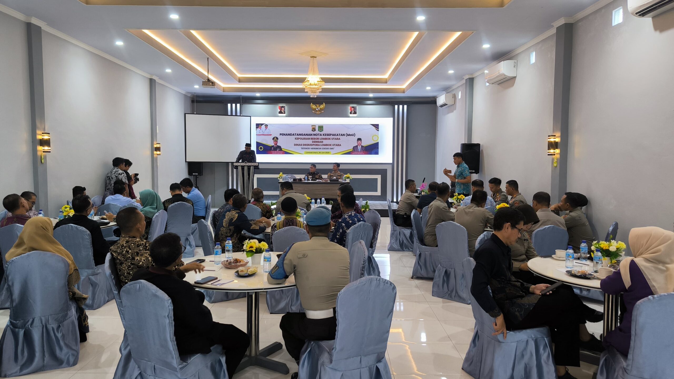 Kapolres Lombok Utara, AKBP Agus Purwanta, S.I.K., dalam sambutannya menyampaikan bahwa kerja sama ini merupakan bentuk komitmen bersama antara Dikbudpora dan Polres Lombok Utara untuk memberikan perlindungan serta pembinaan terhadap anak-anak usia sekolah.