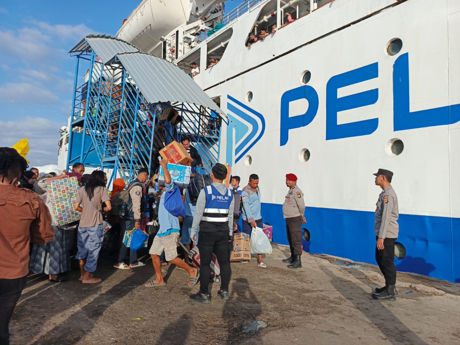Polsek Kawasan Pelabuhan Laut Bima Amankan Proses Embarkasi dan Debarkasi Kapal KM. AWU di Pelabuhan Bima