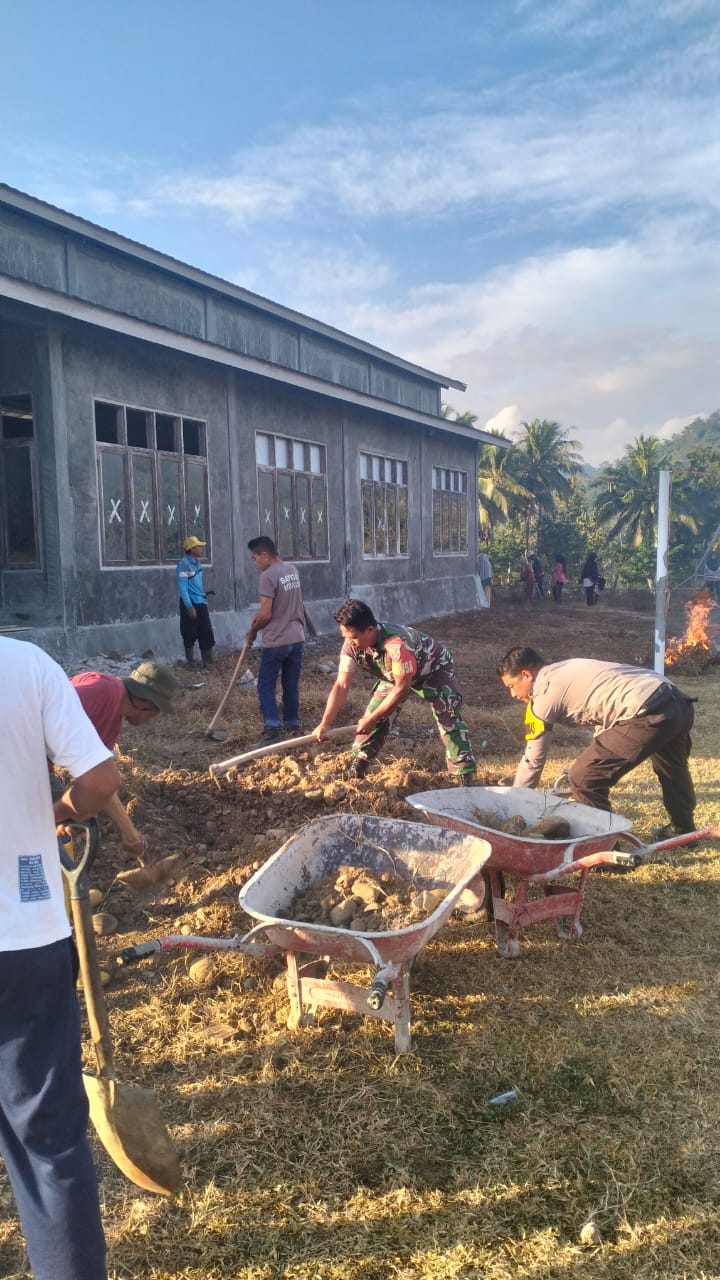 Bhabinkamtibmas Desa Lampok Bersama Pemerintah Desa dan Masyarakat Gelar Gotong Royong di Lapangan Serbaguna