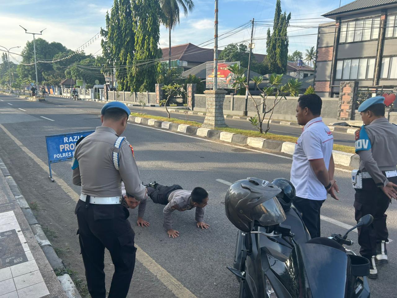 Dari hasil pemeriksaan, ditemukan beberapa pelanggaran disiplin oleh sejumlah personel, seperti tidak membawa surat-surat kendaraan lengkap dan penampilan yang tidak sesuai dengan ketentuan. Terhadap personel yang melanggar, langsung diberikan tindakan disiplin berupa hukuman fisik ringan seperti push-up, serta diingatkan untuk segera melengkapi kekurangan administrasi.