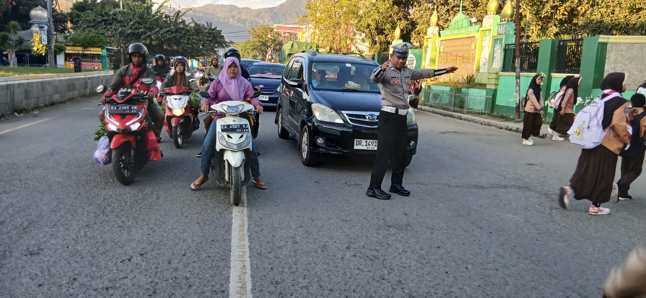 Bima Kota, NTB (19 Juli 2025) – Untuk menciptakan situasi lalu lintas yang aman, tertib dan lancar pada jam-jam rawan pagi, Personel Polsek Rasanae Barat Polres Bima Kota melaksanakan kegiatan Rawan Pagi atau Strong Point di depan MTsN 1 Kota Bima, Sabtu (19/7/2025) sekitar pukul 06.30 Wita.