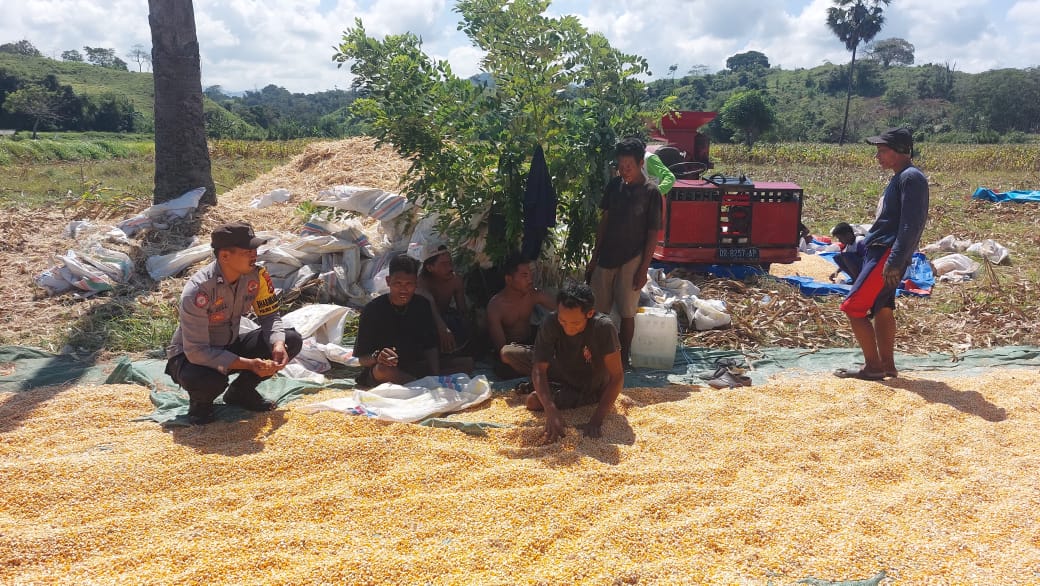 Bhabinkamtibmas Desa Talonang Baru Dampingi Panen dan Penjemuran Jagung Tahap II