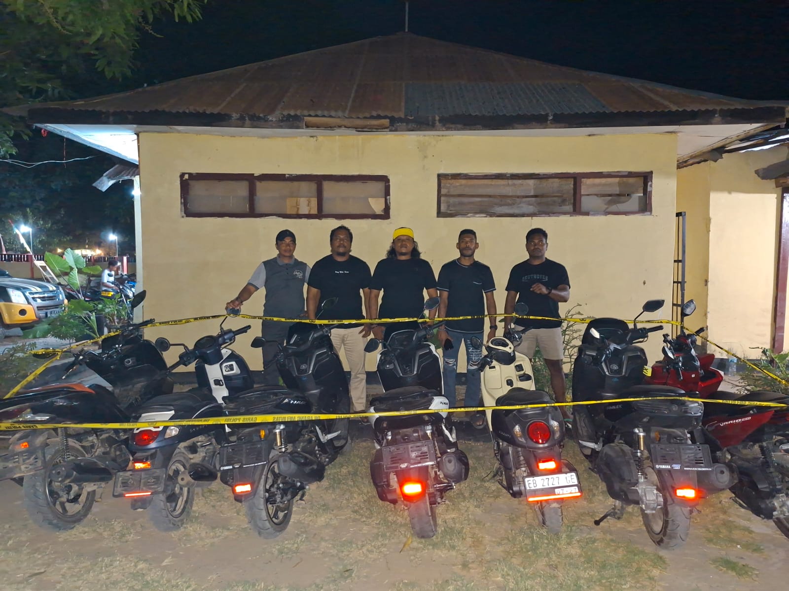 Adapun barang bukti yang berhasil diamankan adalah 1 unit sepeda motor (SPM) merk Honda PCX warna hitam, 3 unit SPM merk Yamaha NMAX, 2 unit SPM merk Honda Scoopy, 1 unit SPM merk Honda Vario warna merah maroon.
