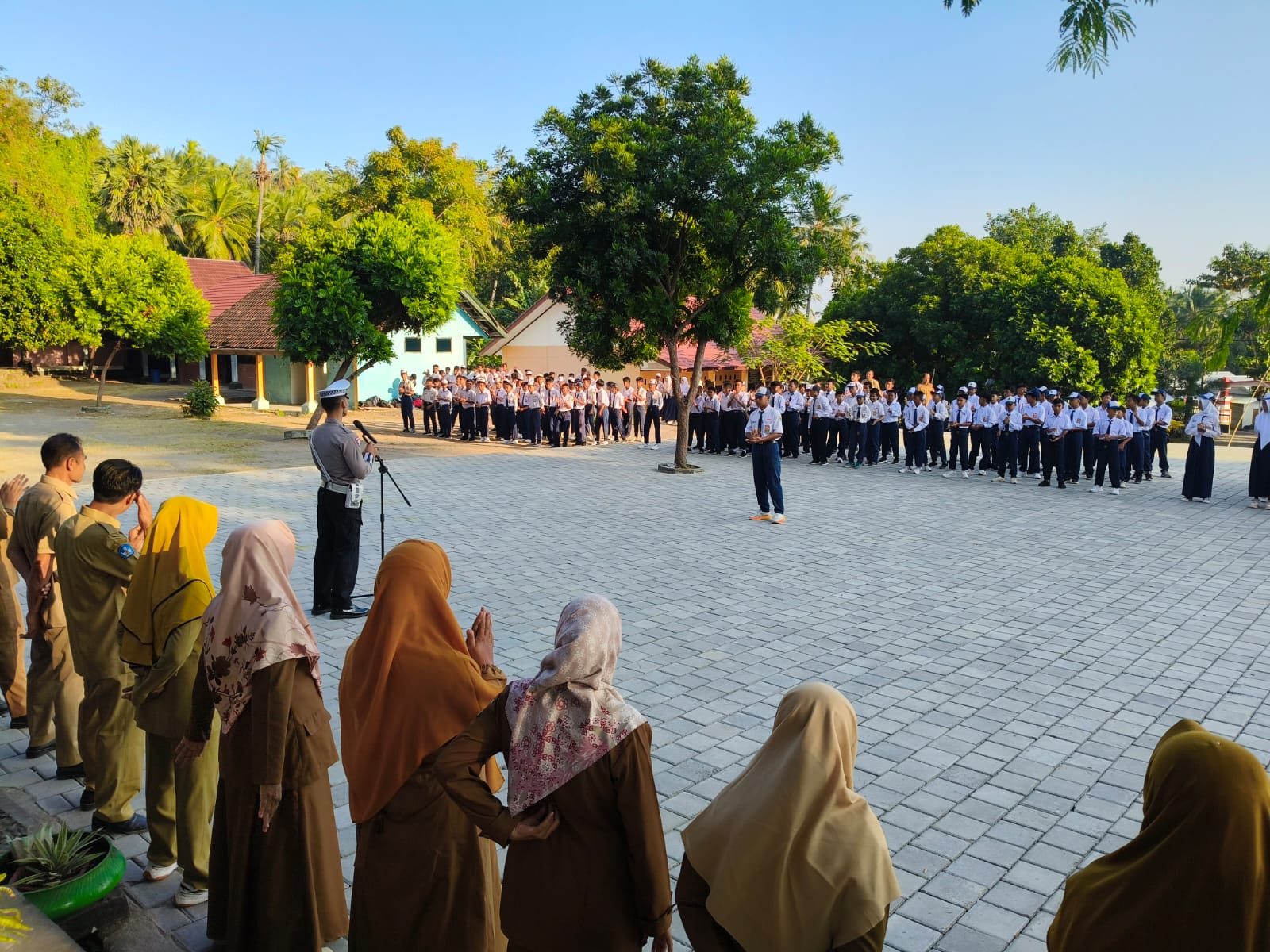 Lombok Utara – PS. Kanit Kamsel Satlantas Polres Lombok Utara bertindak sebagai pembina upacara di SMPN 1 Pemenang, Kecamatan Pemenang, Kabupaten Lombok Utara, pada Senin, 4/8/2025.