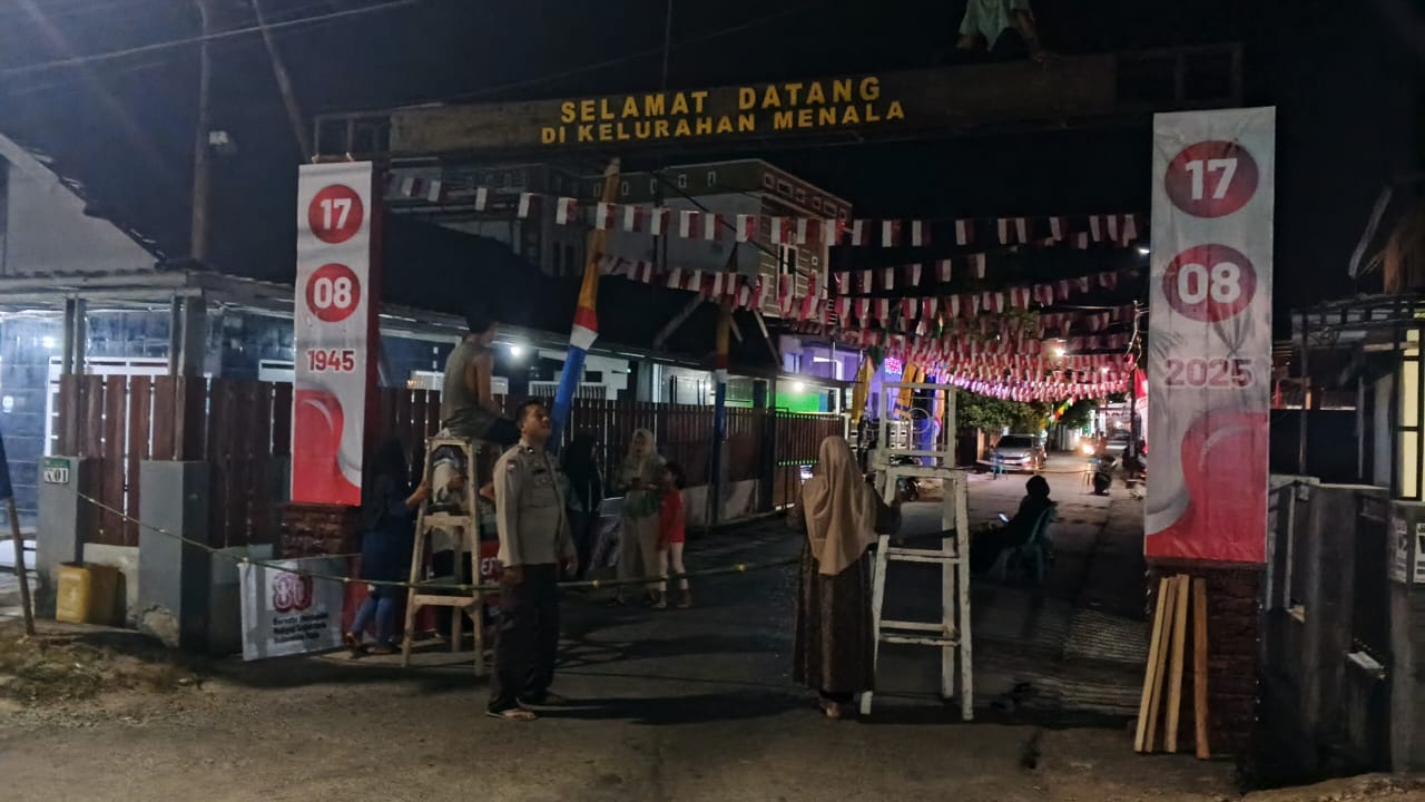 Kegiatan yang dimulai pukul 20.00 WITA ini dipimpin langsung oleh Lurah Menala, dan dihadiri oleh Babinsa serta perwakilan dari AGR. Dengan semangat kebersamaan, mereka bahu membahu menghias gapura kelurahan yang menjadi salah satu titik fokus perlombaan.