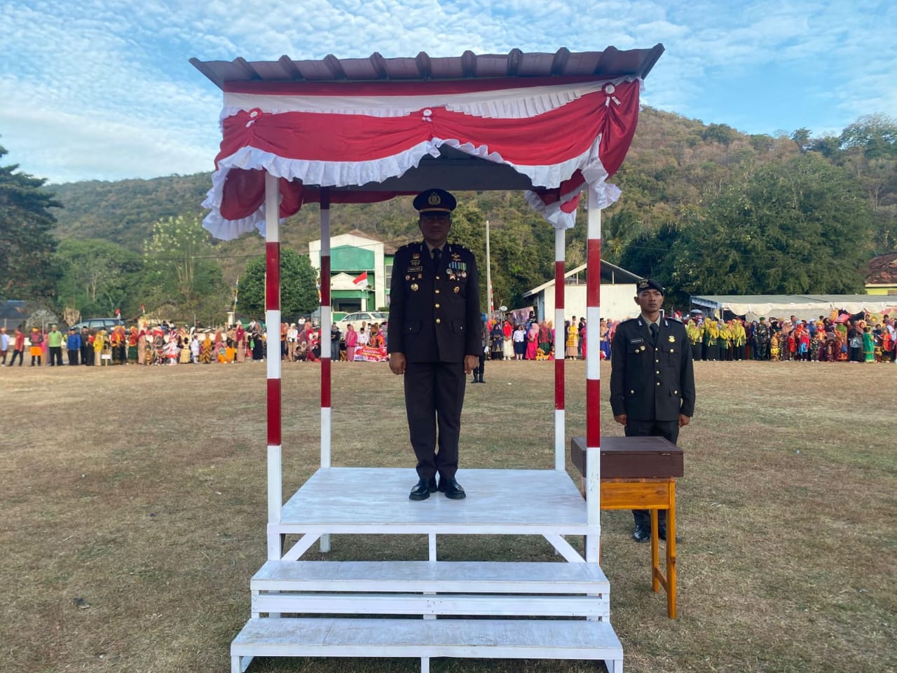 Upacara penurunan bendera merah putih tingkat Kecamatan Hu’u berakhir pukul 17.40 WITA. Seluruh rangkaian kegiatan berjalan aman, lancar, dan penuh makna.
