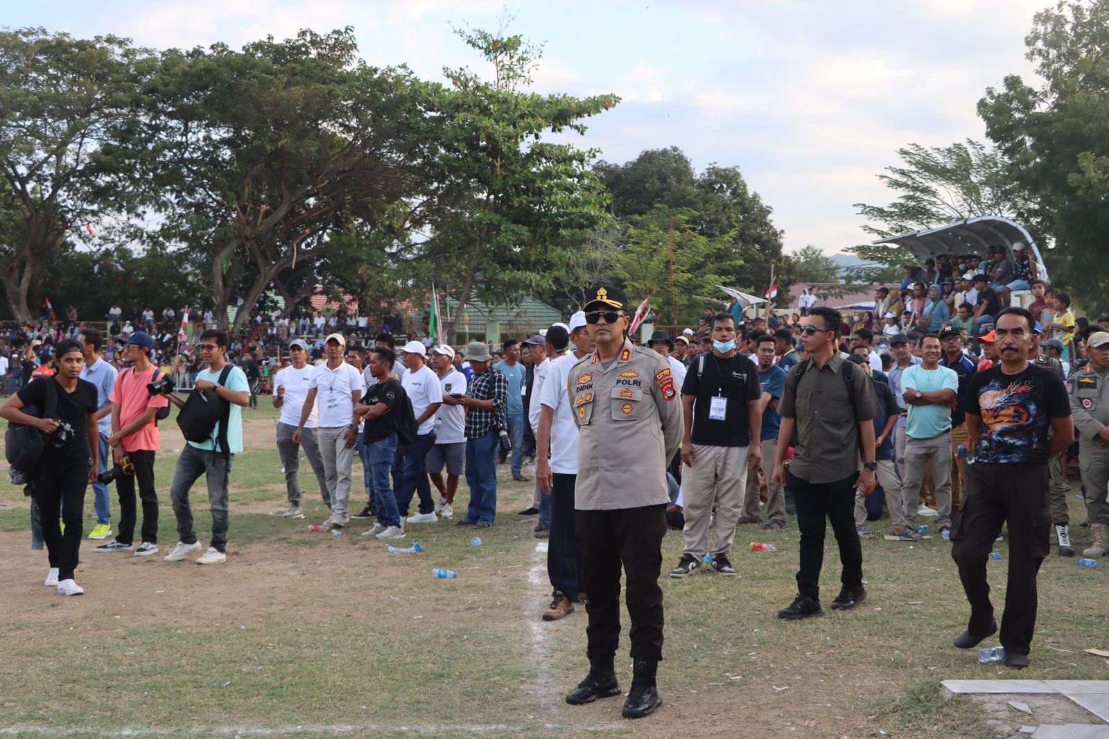 Bima, NTB (19 Agustus 2025) – Kapolres Bima Kota, AKBP Didik Putra Kuncoro, S.I.K., M.Si., memimpin langsung pengamanan pertandingan final sekaligus penutupan Turnamen Sepak Bola Bupati Cup Tahun 2025 yang digelar di GOR Semangka, Desa Naru, Kecamatan Sape, Kabupaten Bima, pada Selasa (19/8/2025) sore.