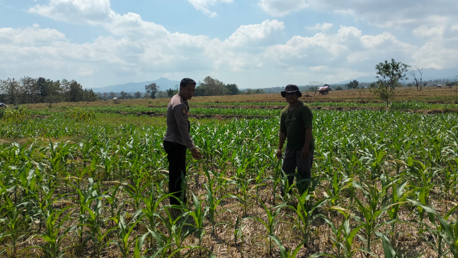 Lahan pertanian jagung milik Bapak Kaswadin memiliki luas sekitar 50 are, dengan usia tanaman jagung yang telah memasuki usia dua bulan. Dalam kunjungannya, AIPDA Sirjono memberikan motivasi dan semangat kepada pemilik lahan agar terus berinovasi dalam mengelola pertanian dan memaksimalkan potensi lahan yang tersedia. Ia juga mengimbau agar selalu berkonsultasi dengan Petugas Penyuluh Lapangan (PPL) apabila menghadapi kendala teknis maupun kesulitan dalam memperoleh sarana dan prasarana pertanian.