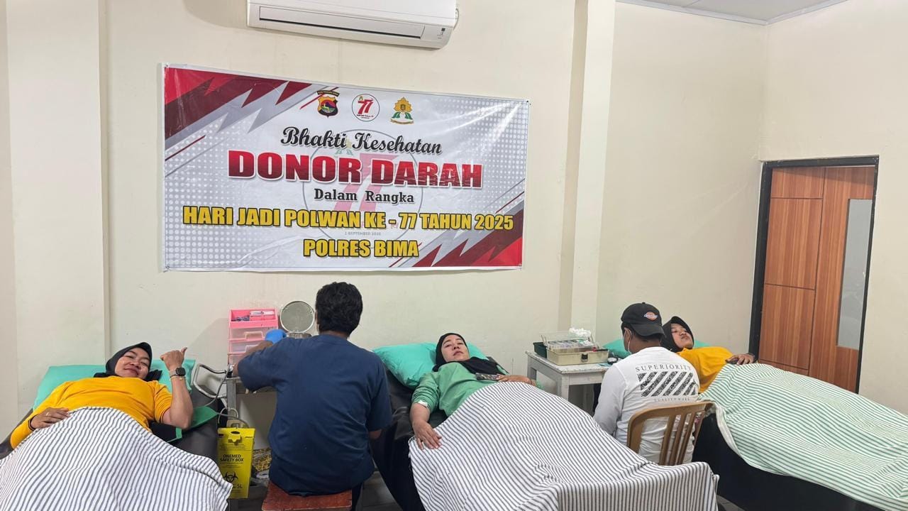 Tidak hanya itu, sebagai bentuk rasa syukur di usianya yang Ke-77 ini Polwan Polres Bima juga menggelar Bhakti sosial seperti donor darah.