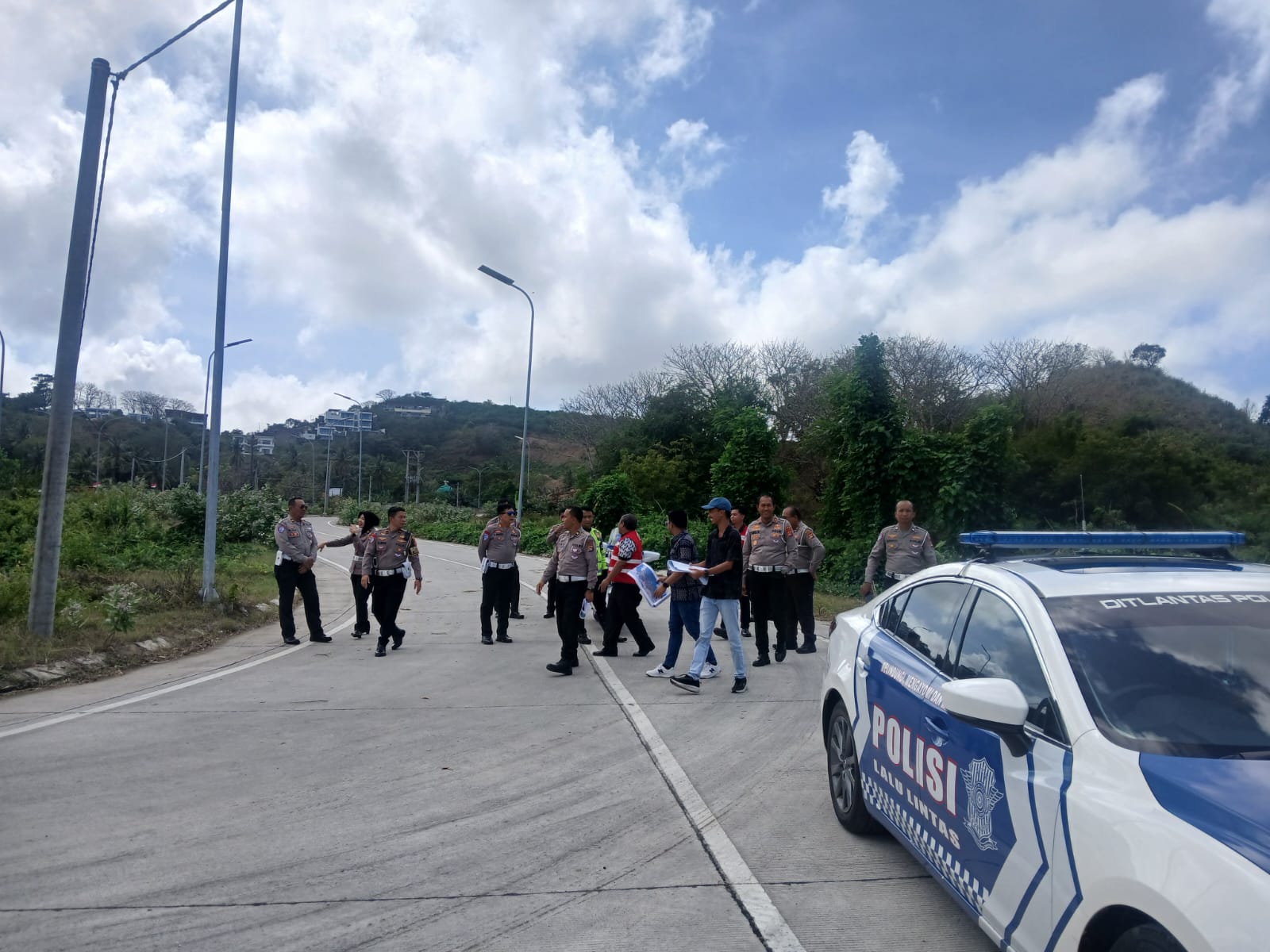 ‎‎LOMBOK TENGAH – Satuan Lalu Lintas (Satlantas) Polres Lombok Tengah bersama Direktorat Lalu Lintas (Ditlantas) Polda NTB melakukan pengecekan jalur dan fasilitas parkir Sirkuit Mandalika dalam rangka persiapan pengamanan jalur event MotoGP 2025.